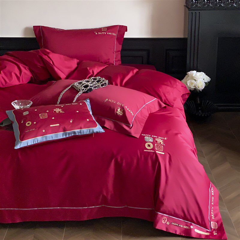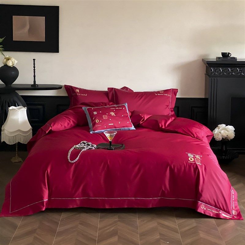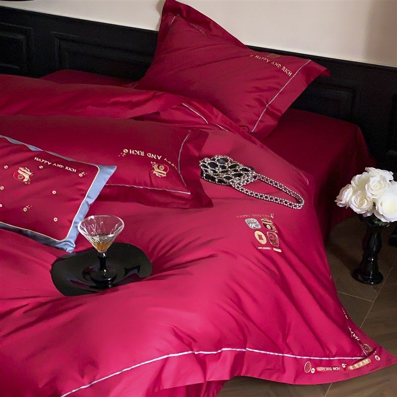 新中式红色结婚庆全棉床上四件套喜庆婚嫁喜被套床单1.8m床品