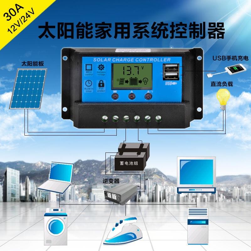 太阳能控制器12v24v全自动通用型光伏控制器转换光伏发电板充电器