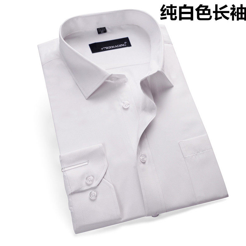 男士长袖衬衫春夏薄款加肥加大码职业工装商务男正装免熨白色衬衣