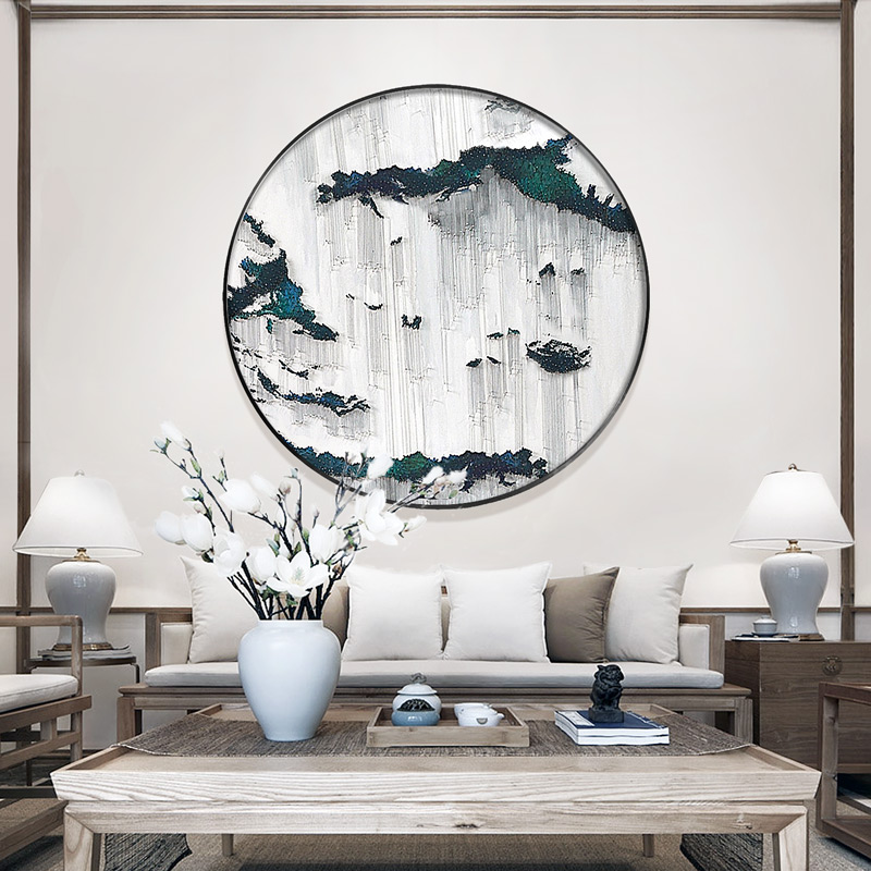 银丝线立体艺术画客厅装饰画酒店软装背景墙玄关圆形竖版现代挂画