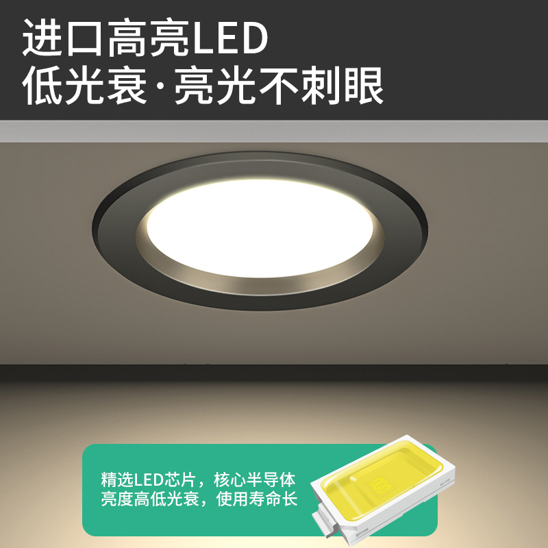 黑色筒灯led嵌入式店铺商用家用天花灯4寸12公分过道7.5开孔射灯