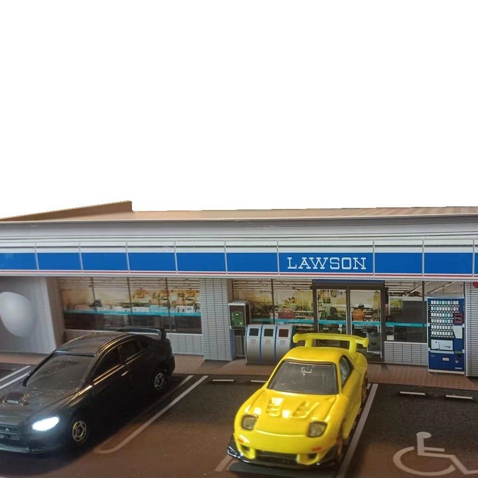 罗森便利店模型LAWSON超市商店模型3D纸模手工1:64建筑场景模型