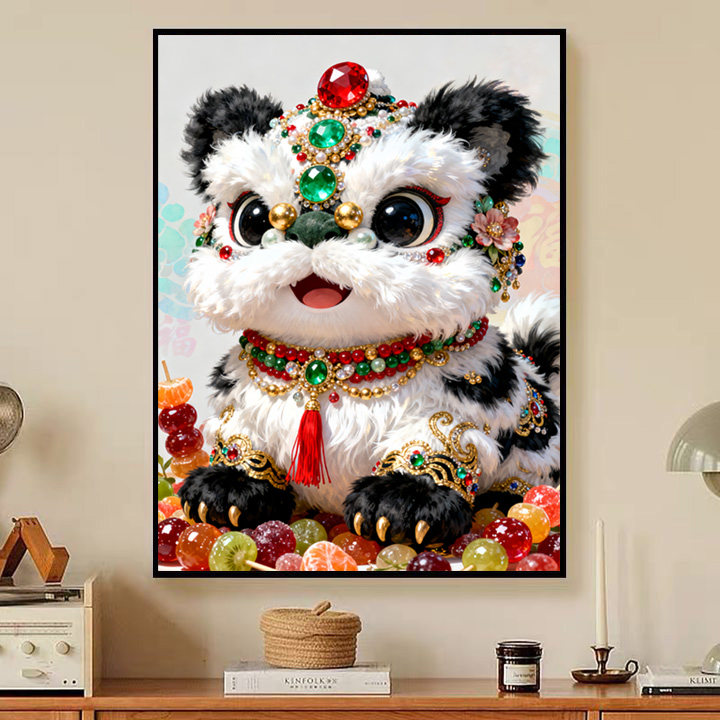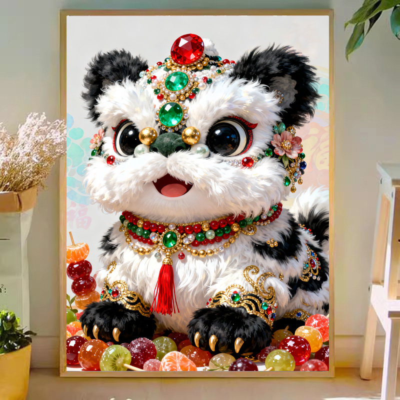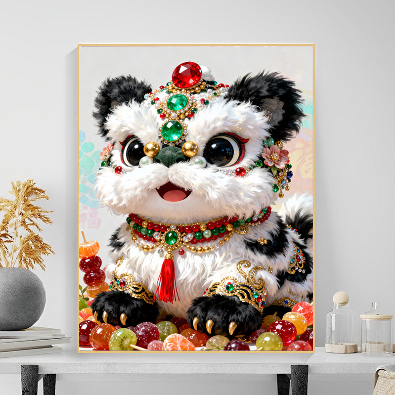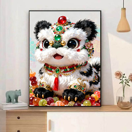 原创版权墨宝萌趣舞狮十字绣套件2026新款自己手工绣可爱治愈刺绣