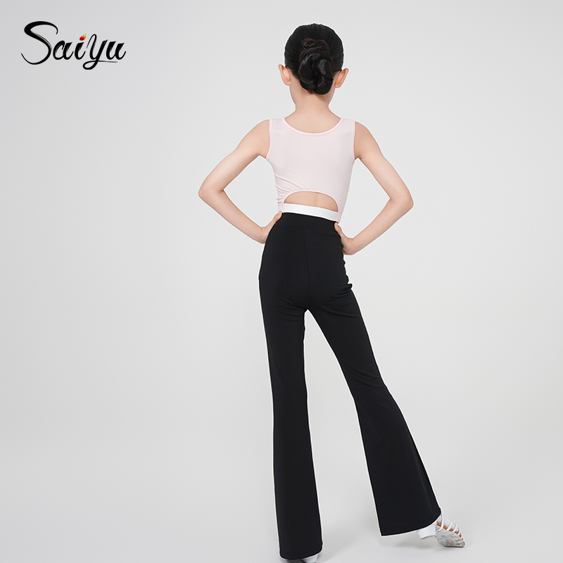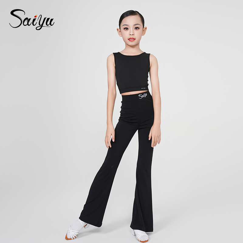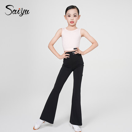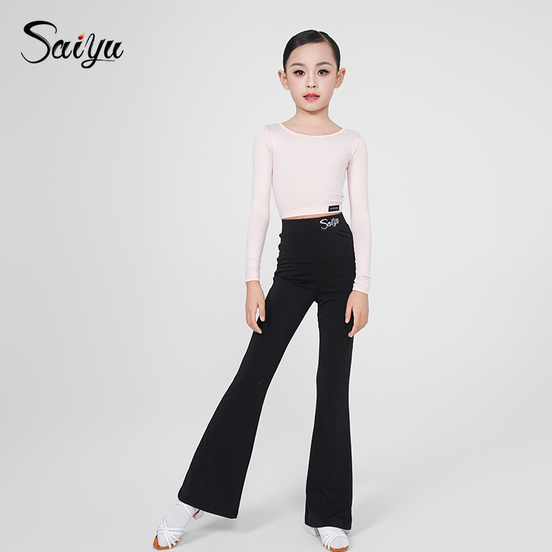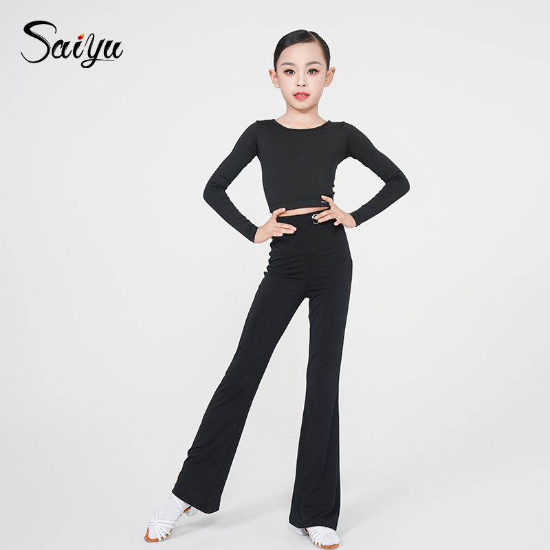 赛域拉丁舞蹈夏季新品长袖短上衣高腰长裤女少儿童训练习功演出服