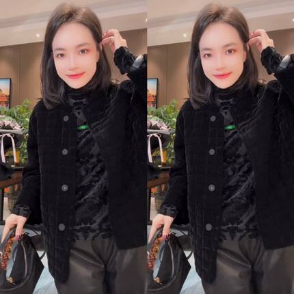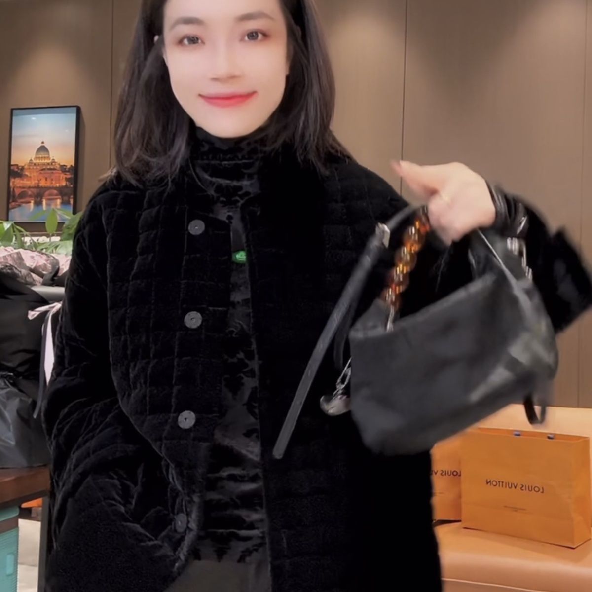 2025网红新款爆款气质棉服时尚短款丝绒秋冬款洋气上衣外套中式潮