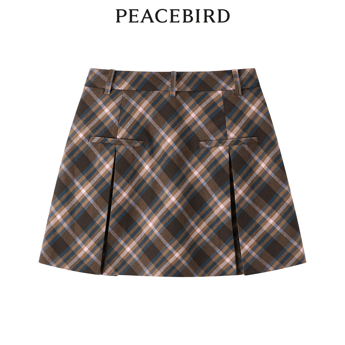 太平鸟女装2024秋冬格纹百褶裙半身裙显瘦A3GED4575