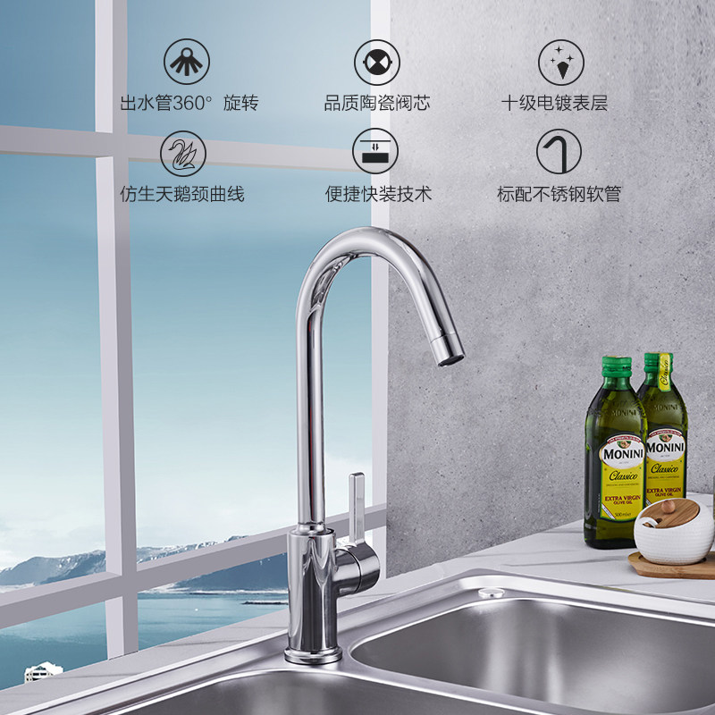 九牧卫浴厨房360旋转冷热洗菜盆水槽水龙头家用洗手池洗碗33080