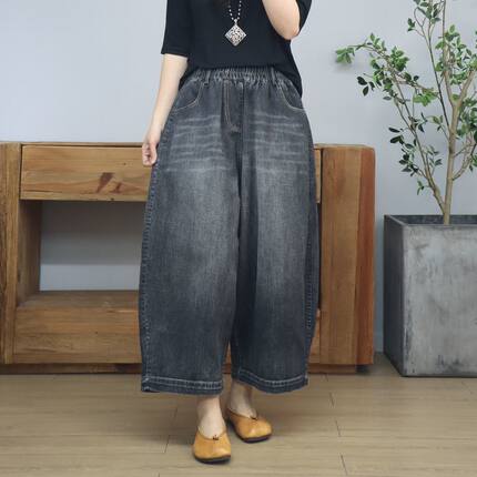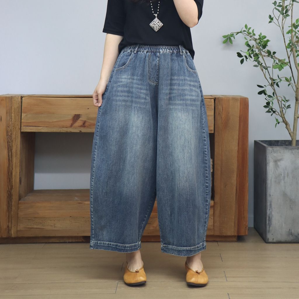 百搭复古牛仔阔腿裤女2025年春夏新款宽松大码简约显瘦萝卜九分裤