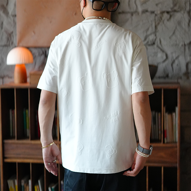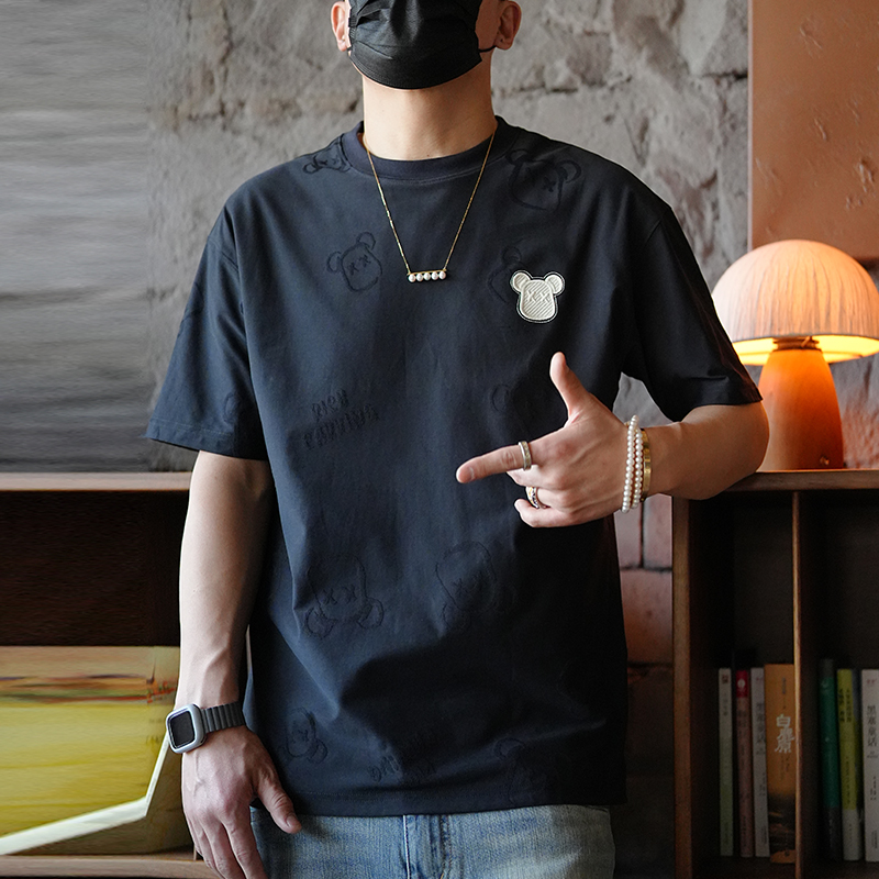 韩版潮流提花刺绣小熊短袖T恤男士夏季潮牌宽松圆领休闲 半袖T恤