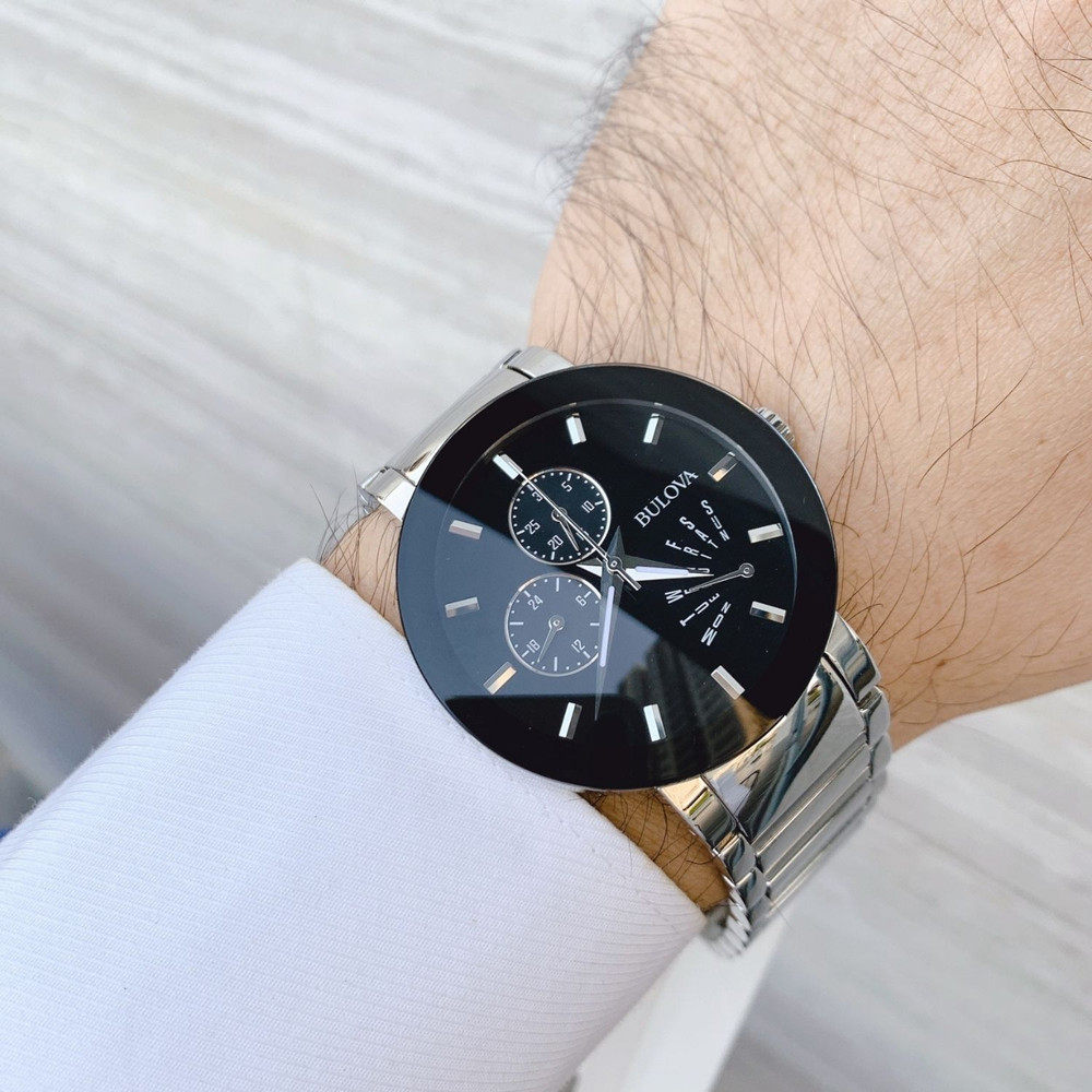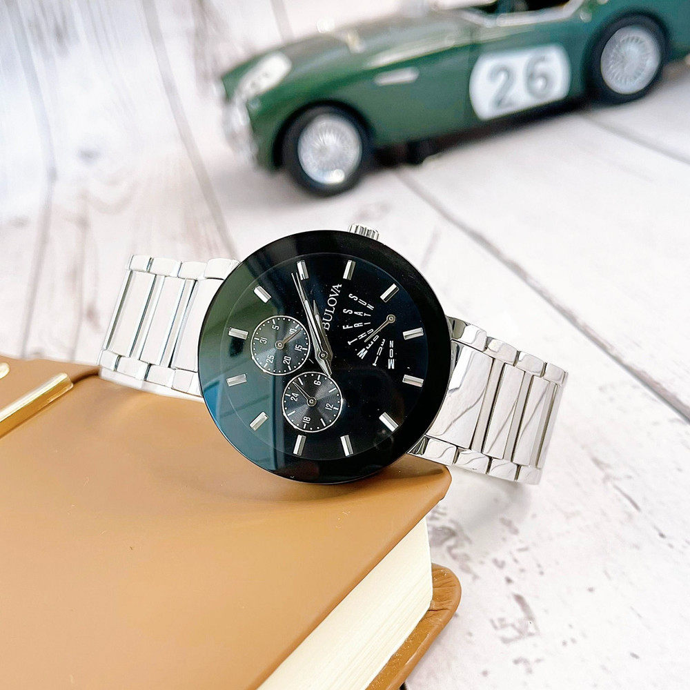 正品代购BULOVA宝路华手表钢带无边框黑盘逆跳夜光石英男表96C105