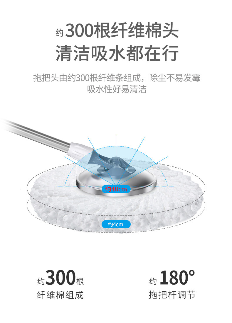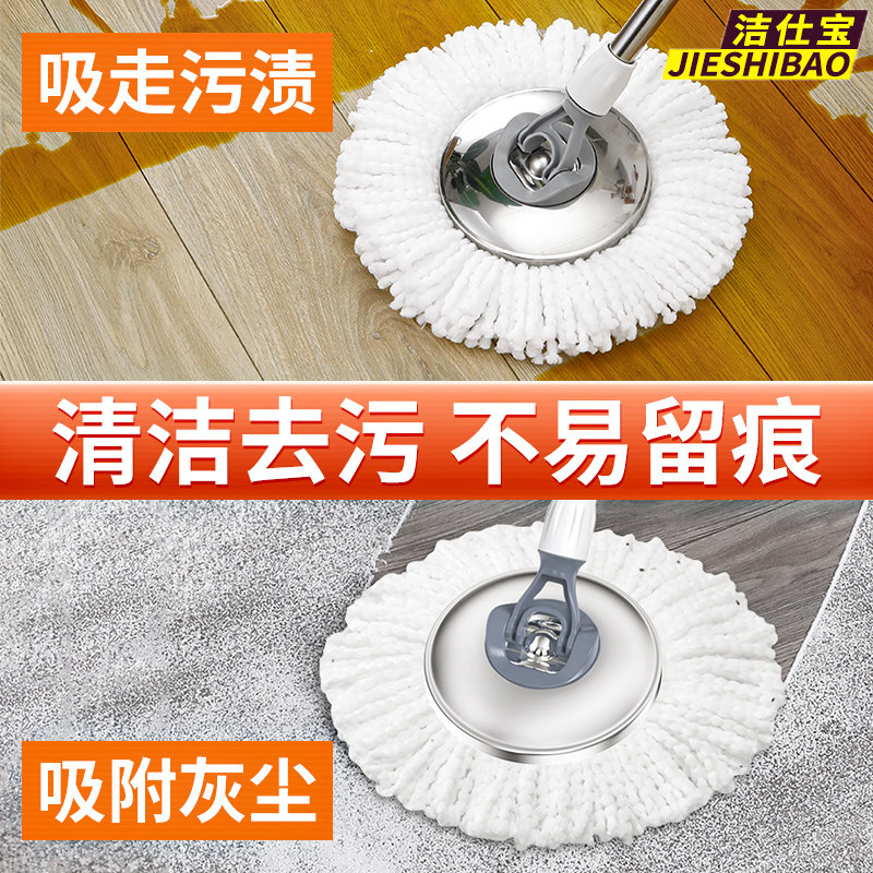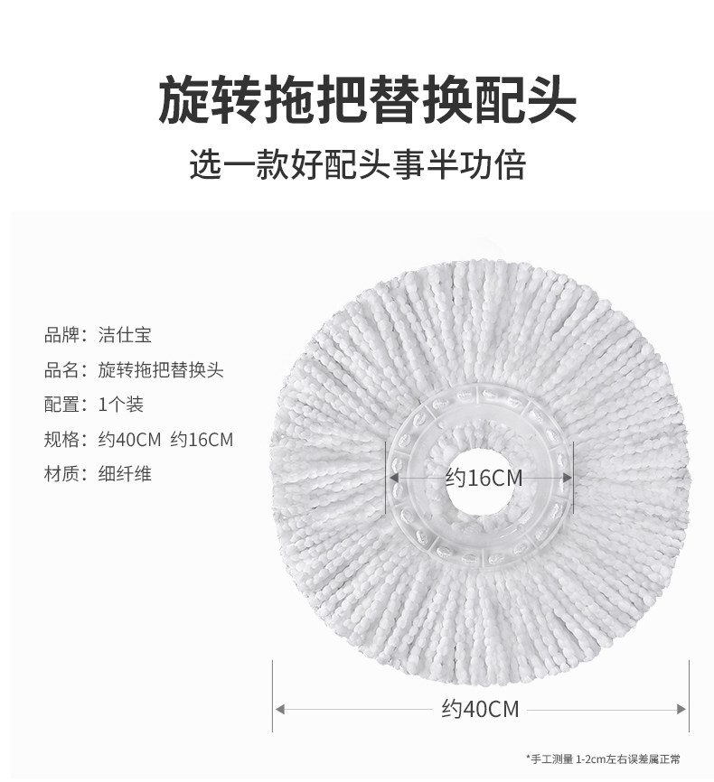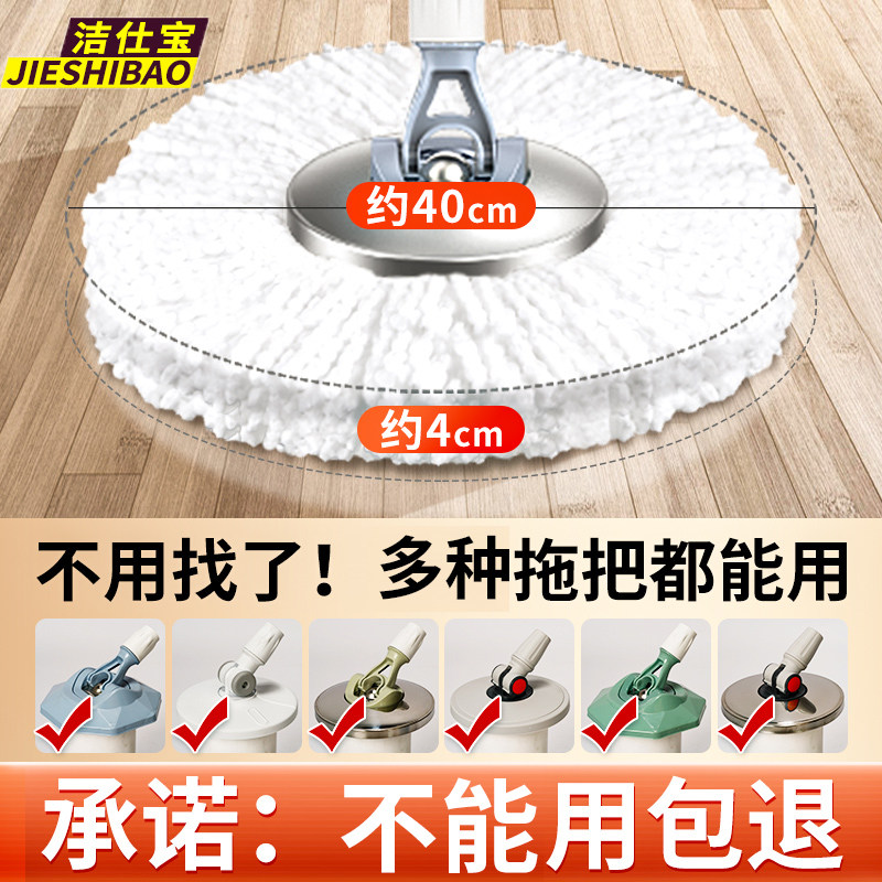 洁仕宝旋转拖把原装配头通用型拖把头个装替换圆形长毛白色大拖头