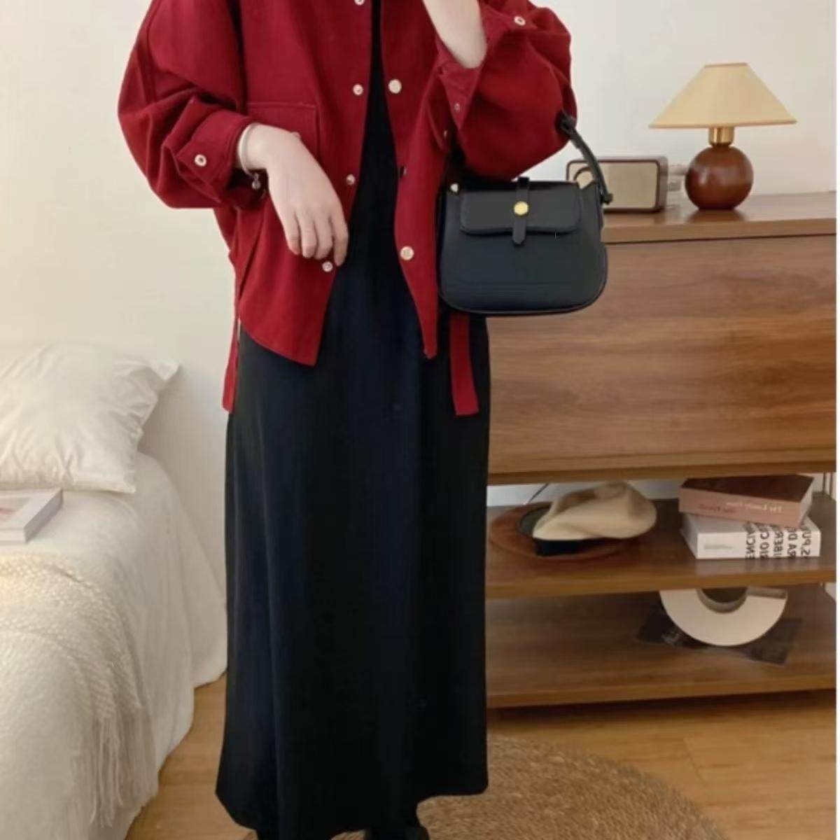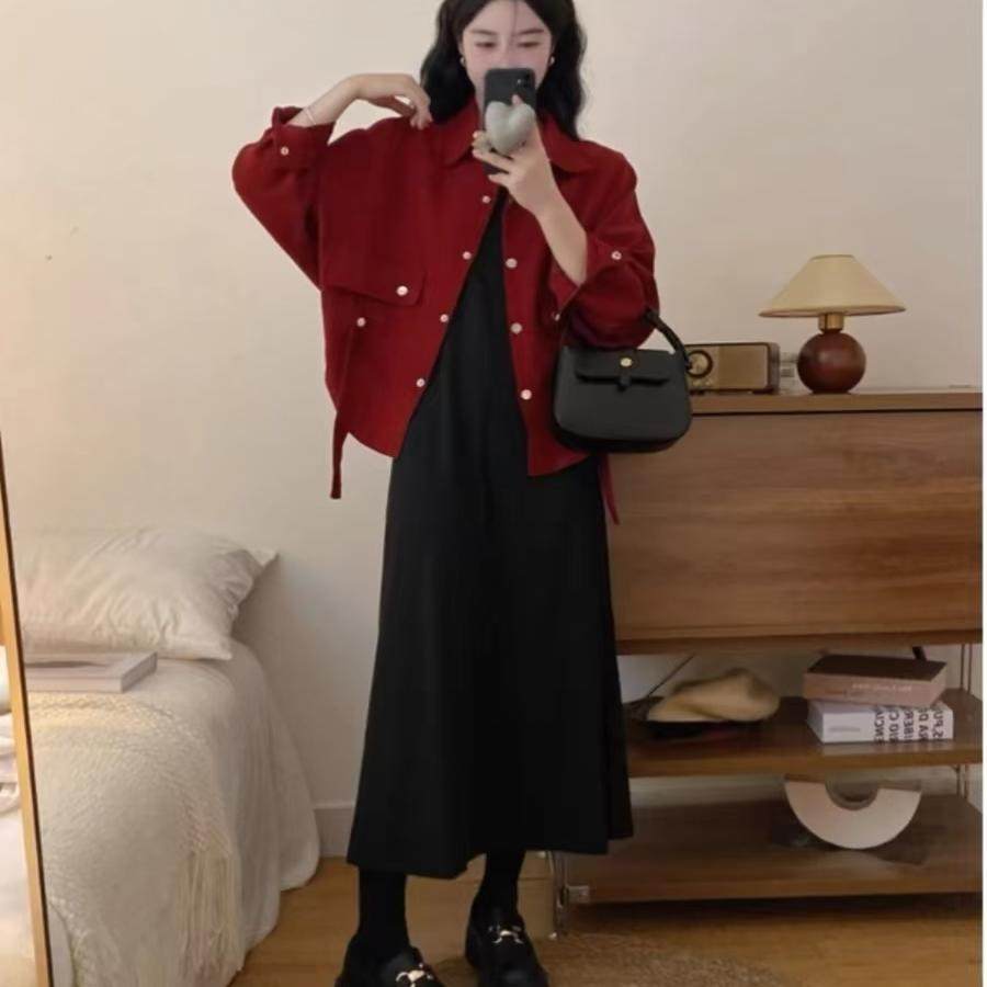 大码黑色吊带连衣裙女秋季宽松遮肚长裙微胖MM小众高级感背心裙子