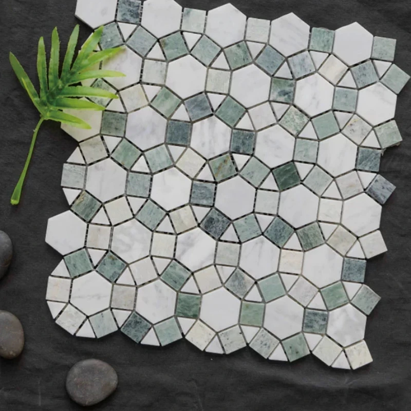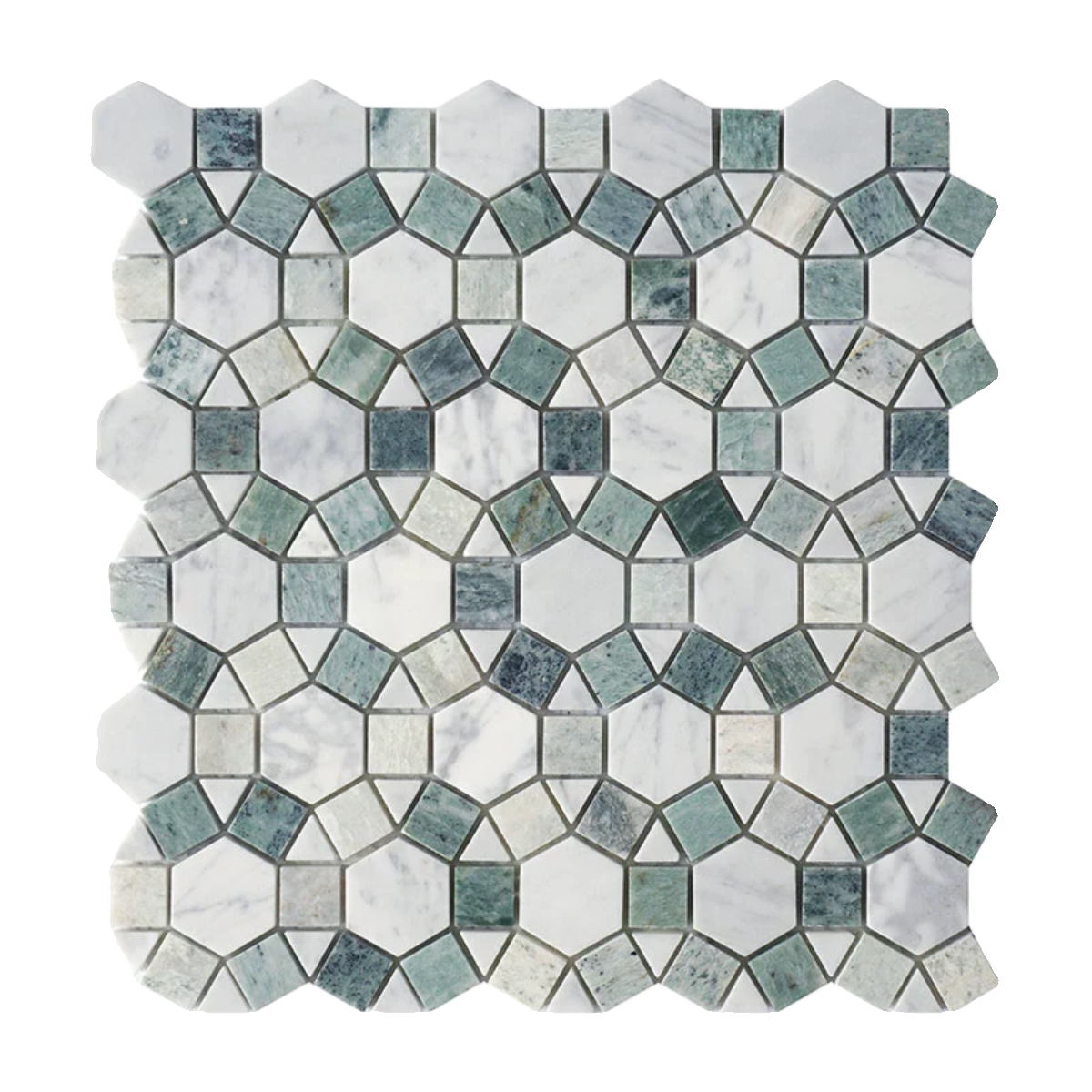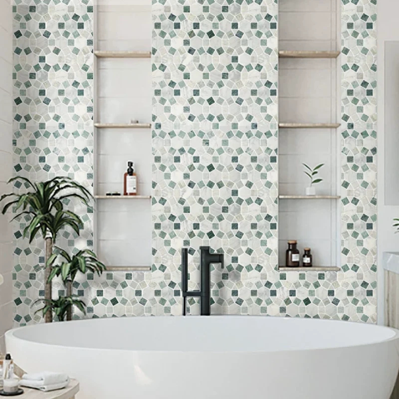 绿色复古风大理石马赛克背景墙卫生间瓷砖法式阳台浴室餐厅墙地砖