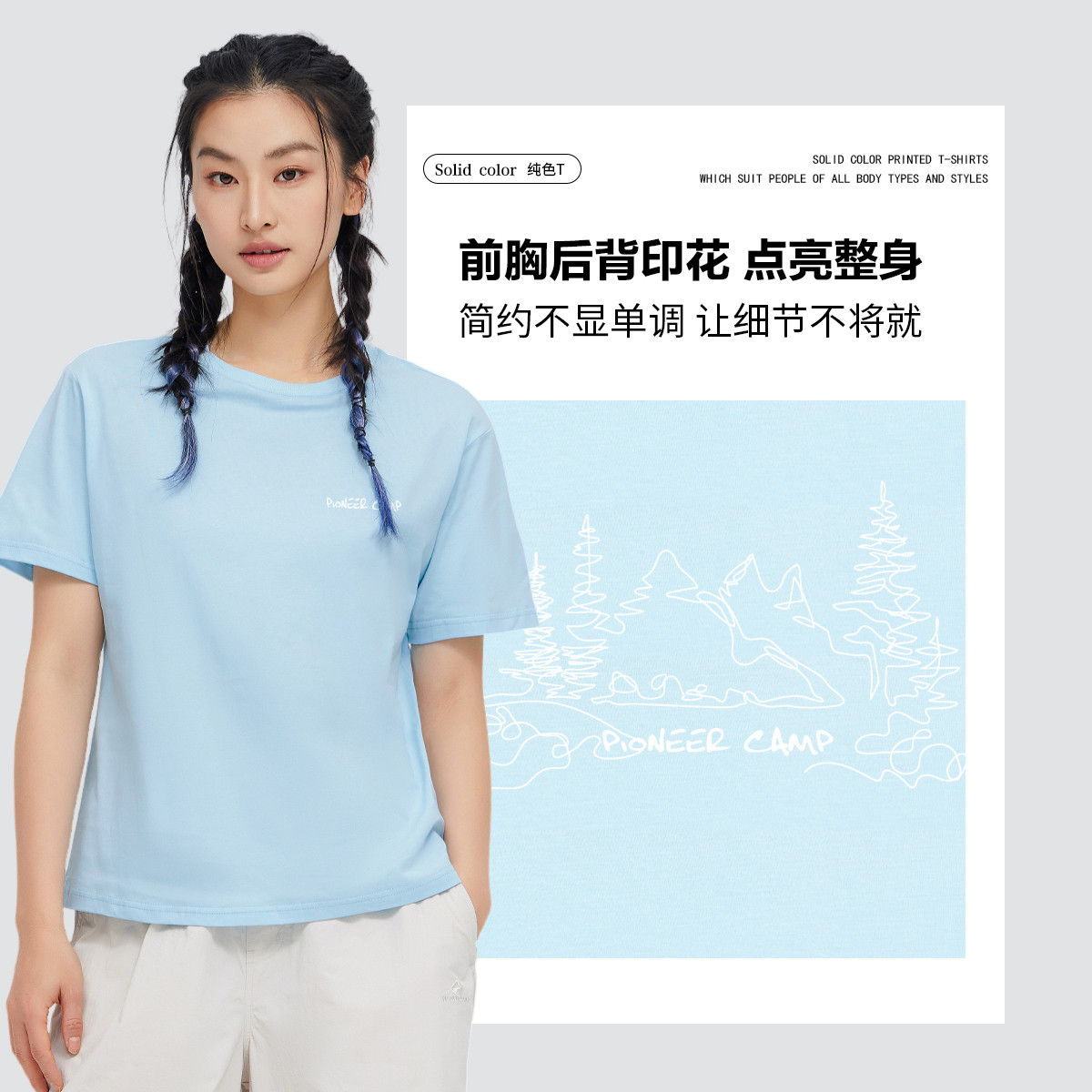 拓路者山系印花纯棉夏季短袖体恤衫舒适休闲运动百搭圆领女式T恤