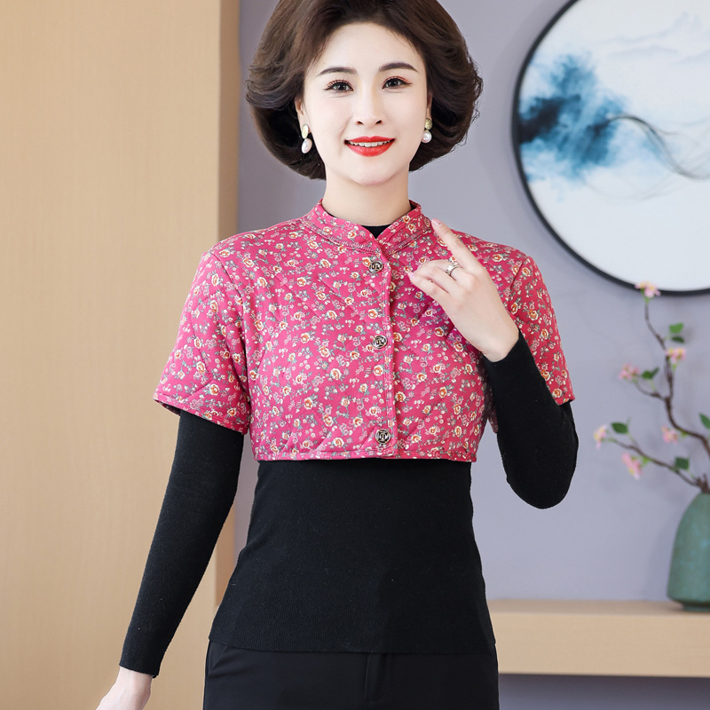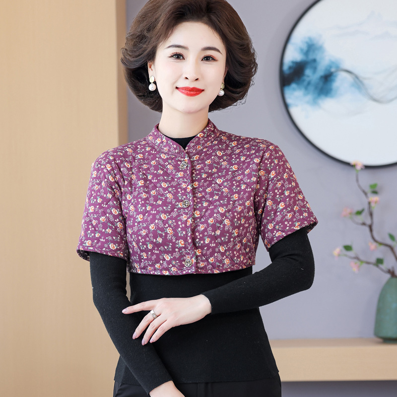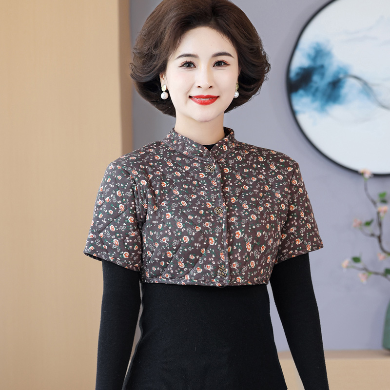 妈妈加厚护肩防寒驼绒棉中袖