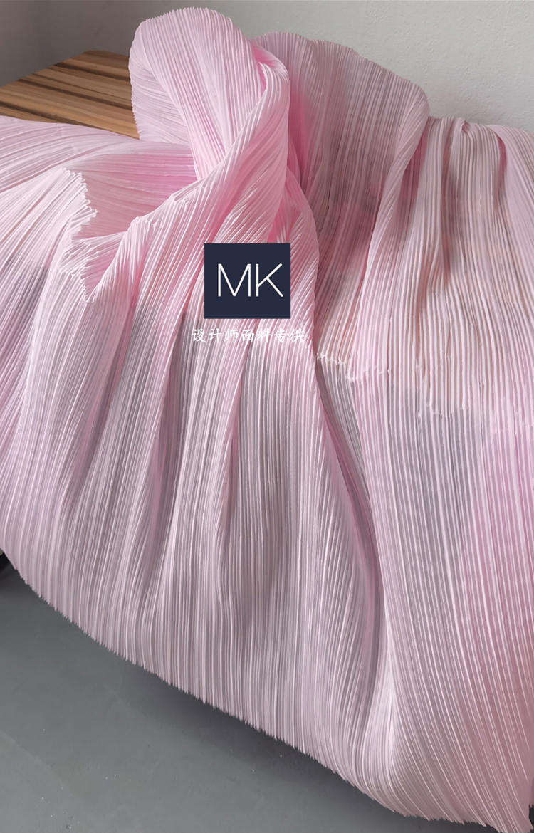 三宅一生浅粉色 压褶柔软布硬挺特殊肌理造型仿棉麻设计师面料
