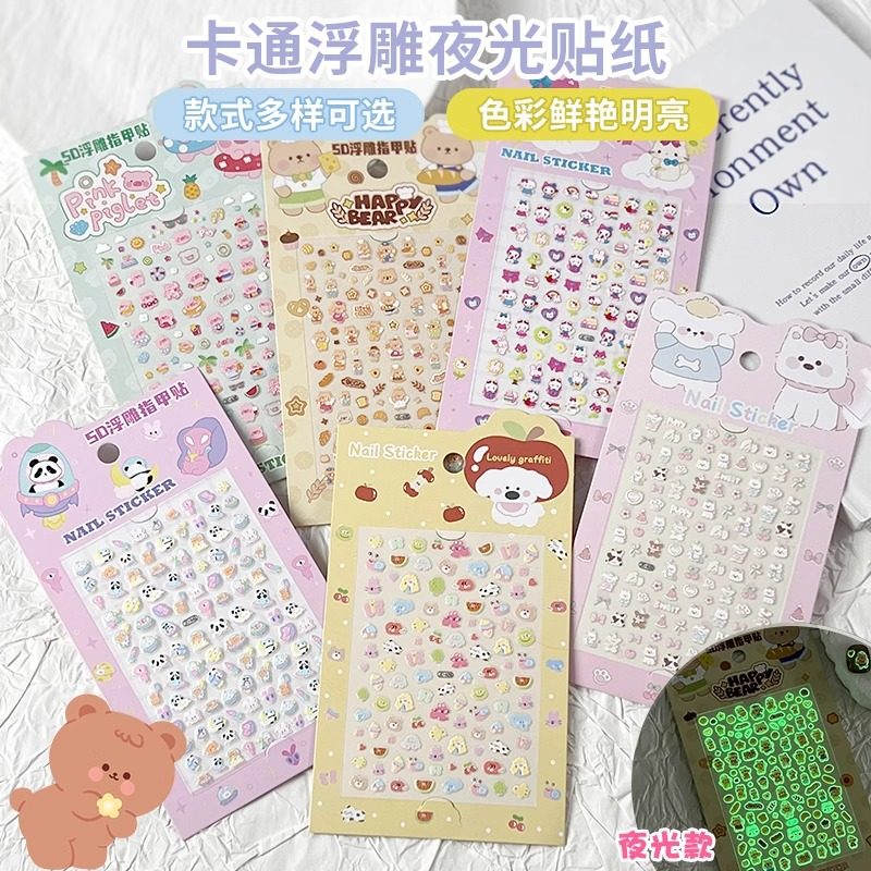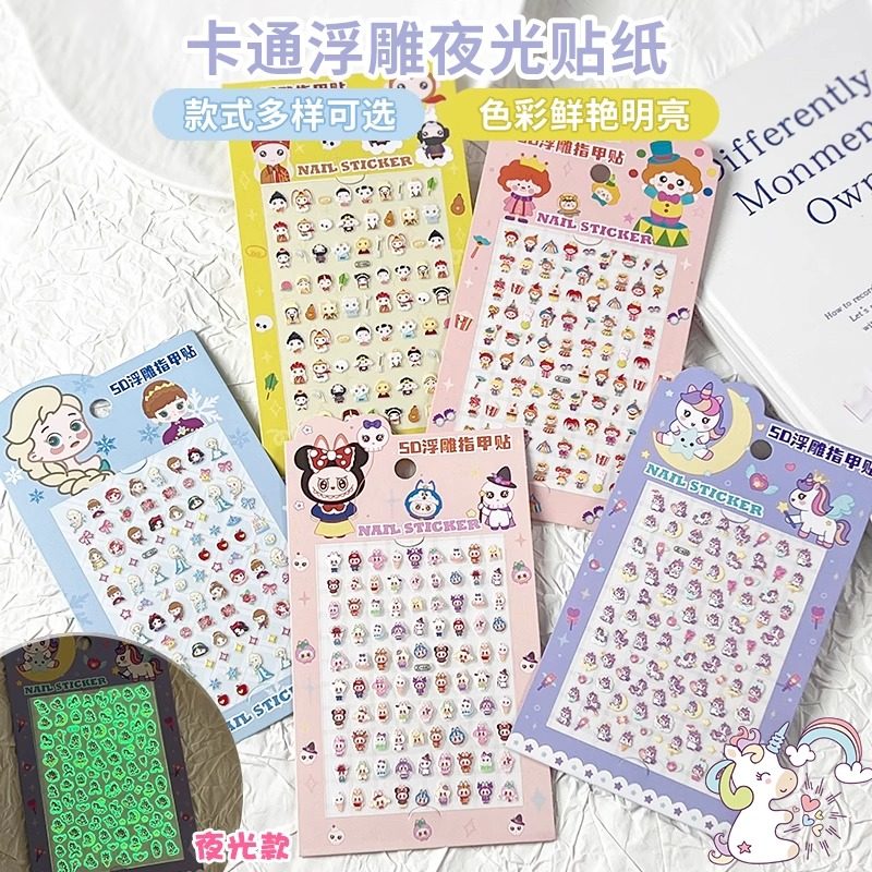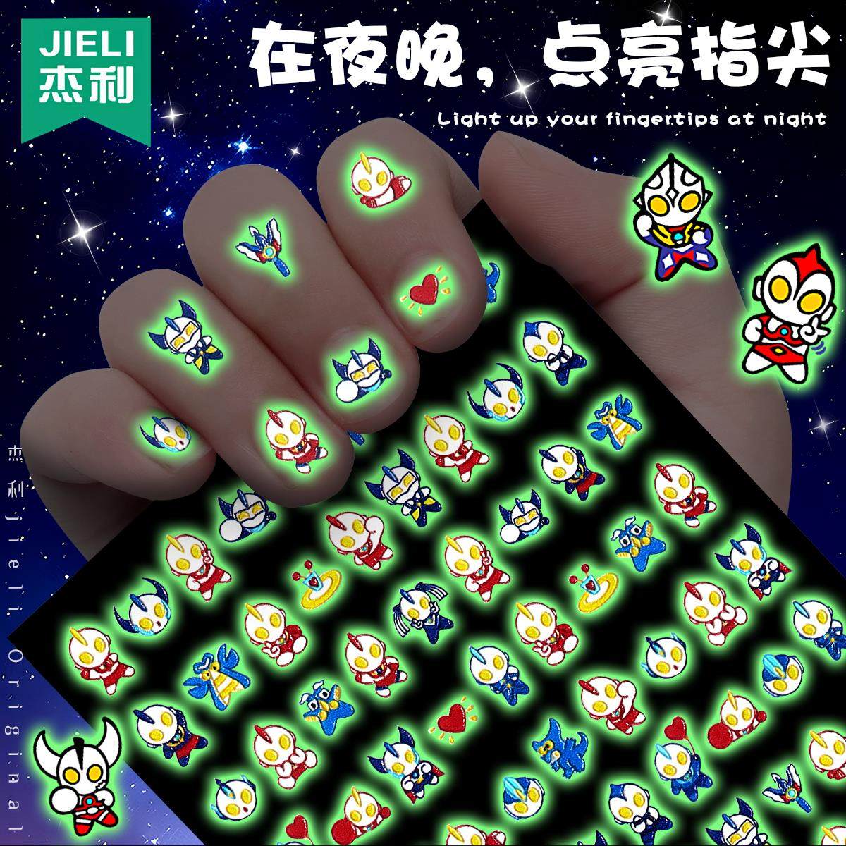 奥特曼5D夜光浮雕指甲贴纸儿童卡通发光指甲贴胶女孩男孩美甲贴片