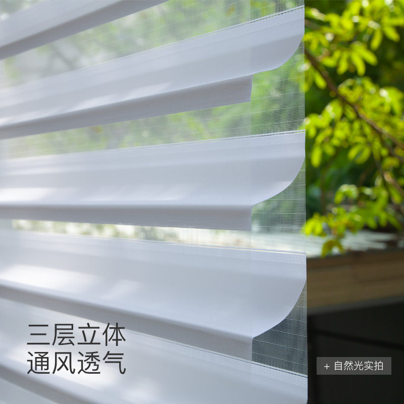 智能电动香格里拉窗帘卷帘 语音遥控升降柔纱帘办公室遮光遮阳帘