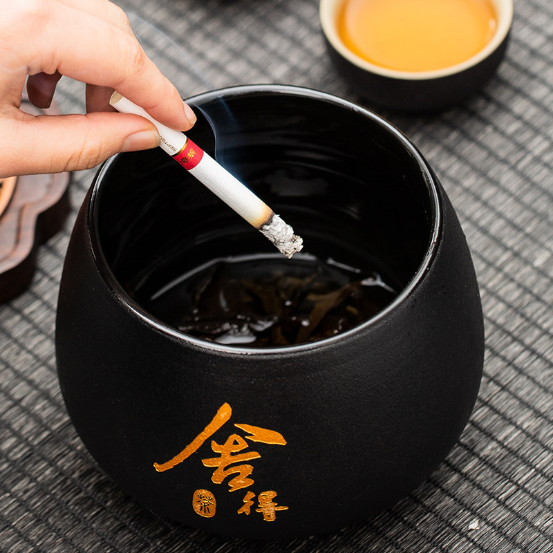 韩恬繁陶瓷烟灰缸茶洗家用办公室客厅创意大号高级感潮流中式烟缸