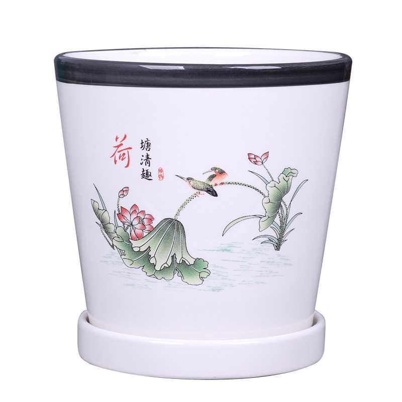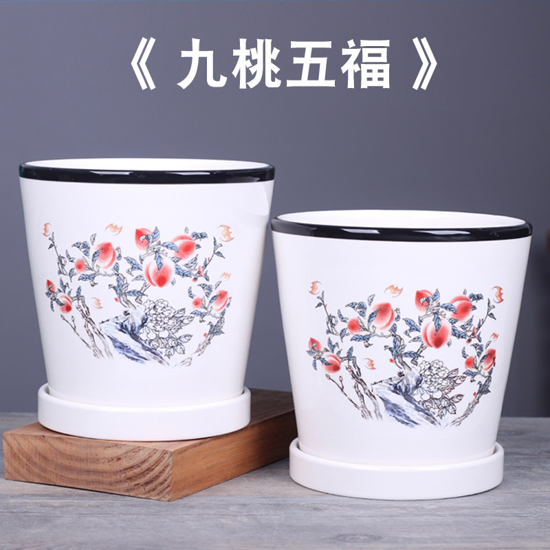 花盆陶瓷客厅兰花盆带托盘