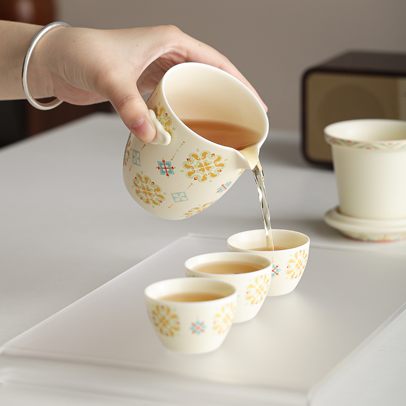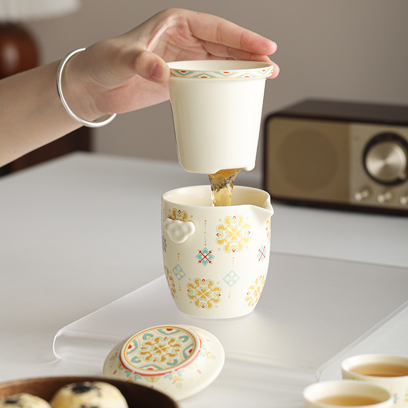 织锦宝相花快客杯陶瓷一壶三杯收纳包中式高档旅行茶具套装便携式
