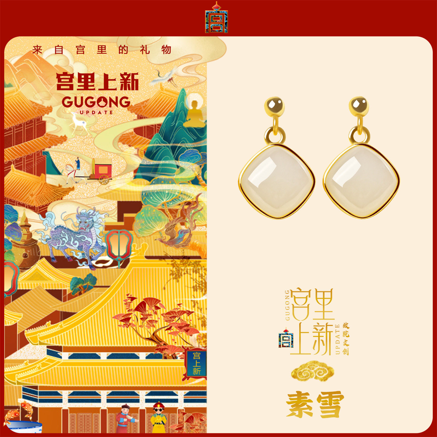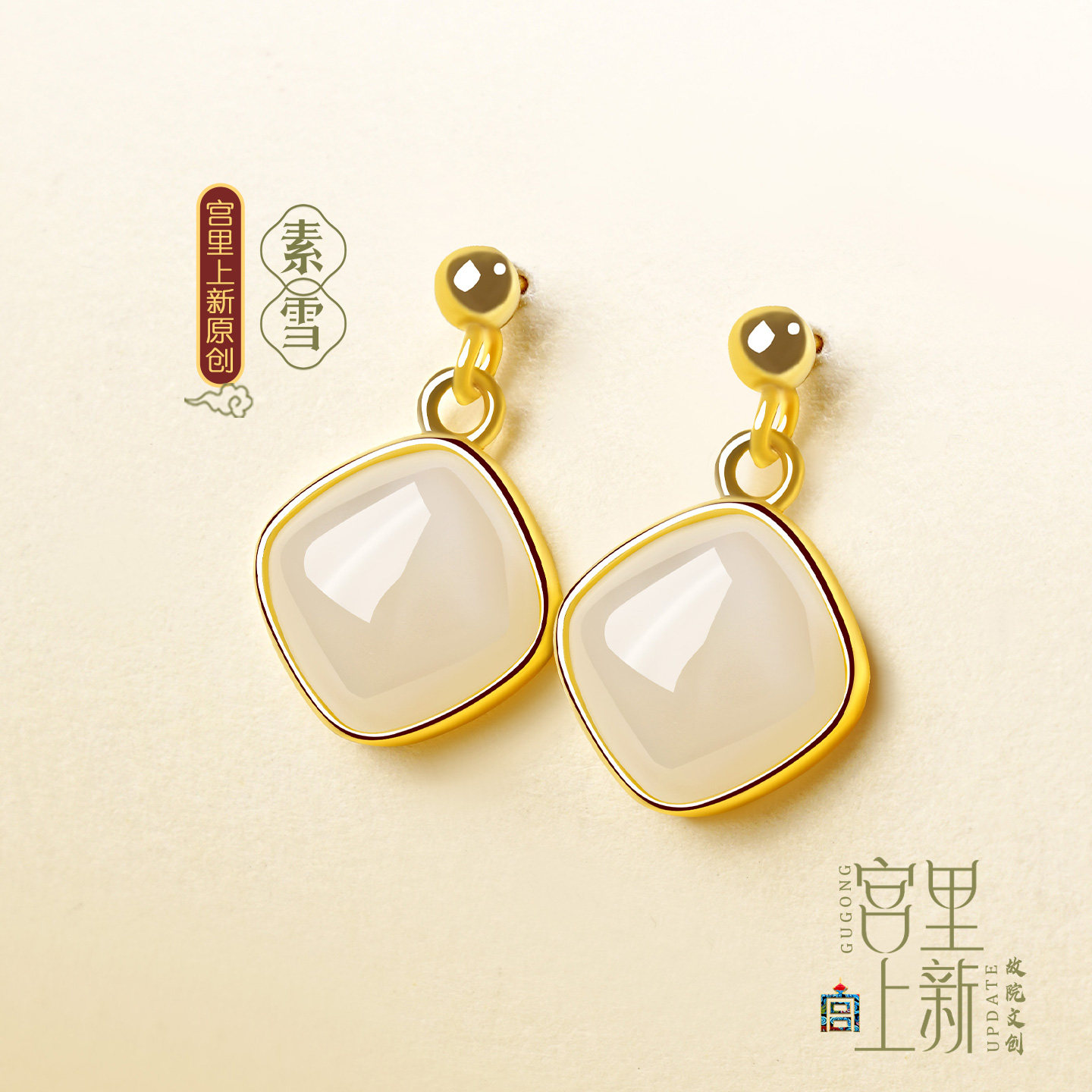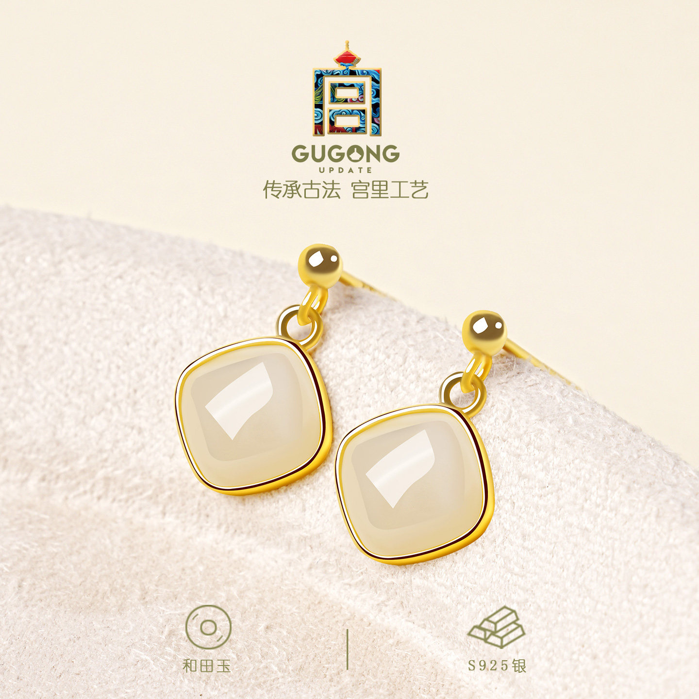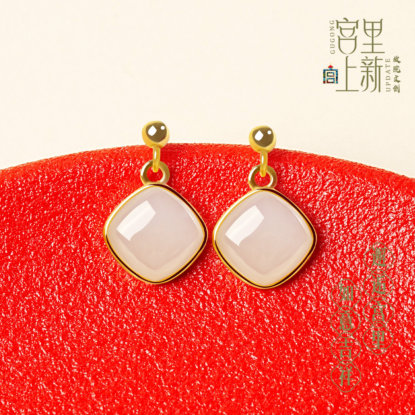 宫里上新和田玉耳钉女款玉石方糖耳环纯银耳饰耳坠生日礼物送妈妈