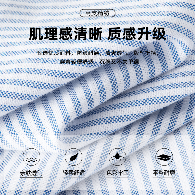 稻草人蓝白色条纹长袖衬衫男款秋季叠穿牛津纺内搭打底衬衣外套A