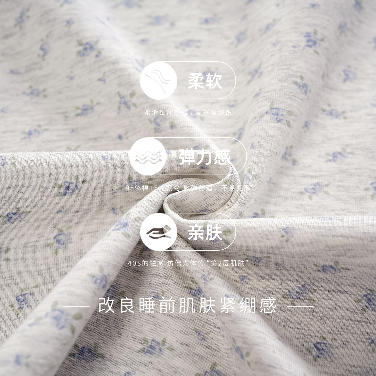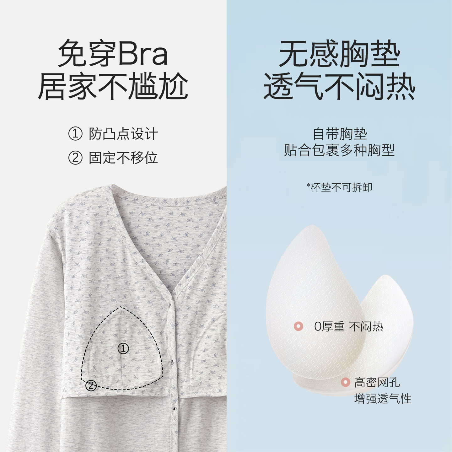 思莉太太纯棉睡衣女款长袖带胸垫甜美碎花小个子绝美春夏天家居服