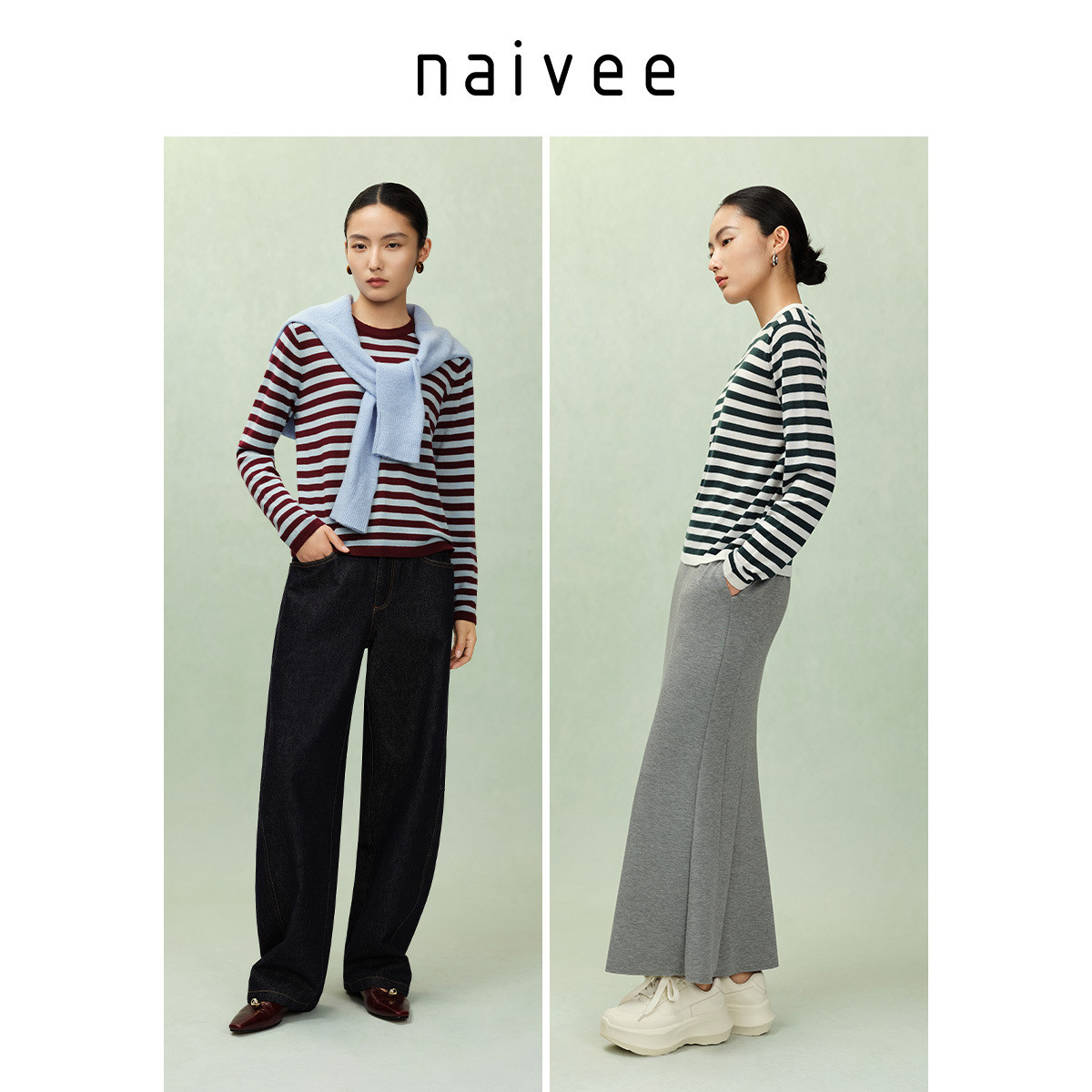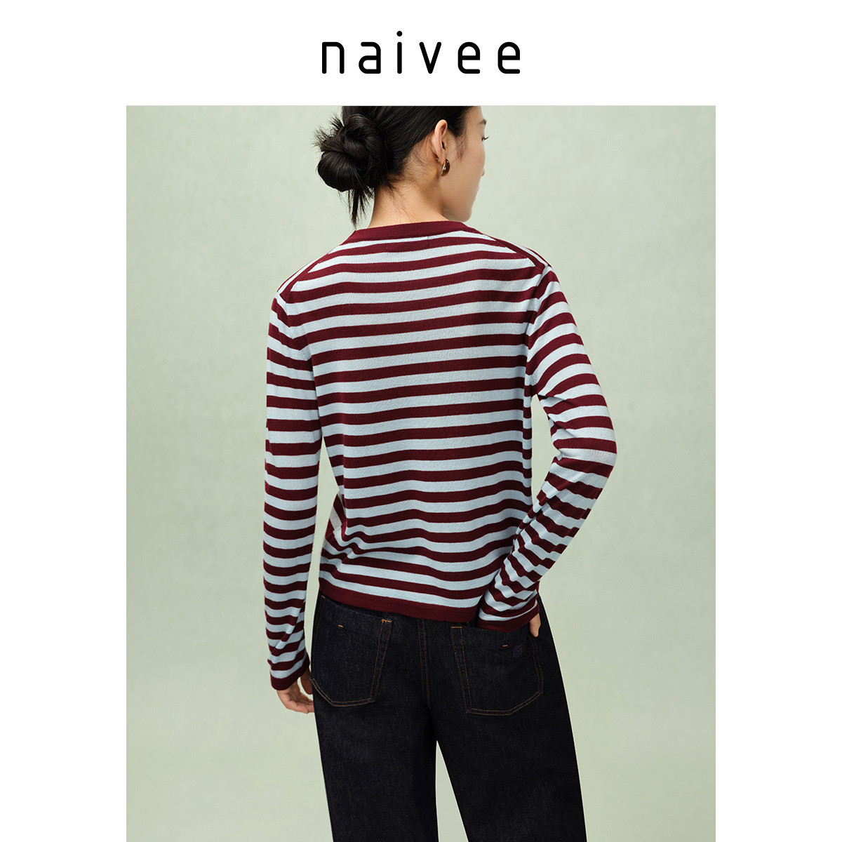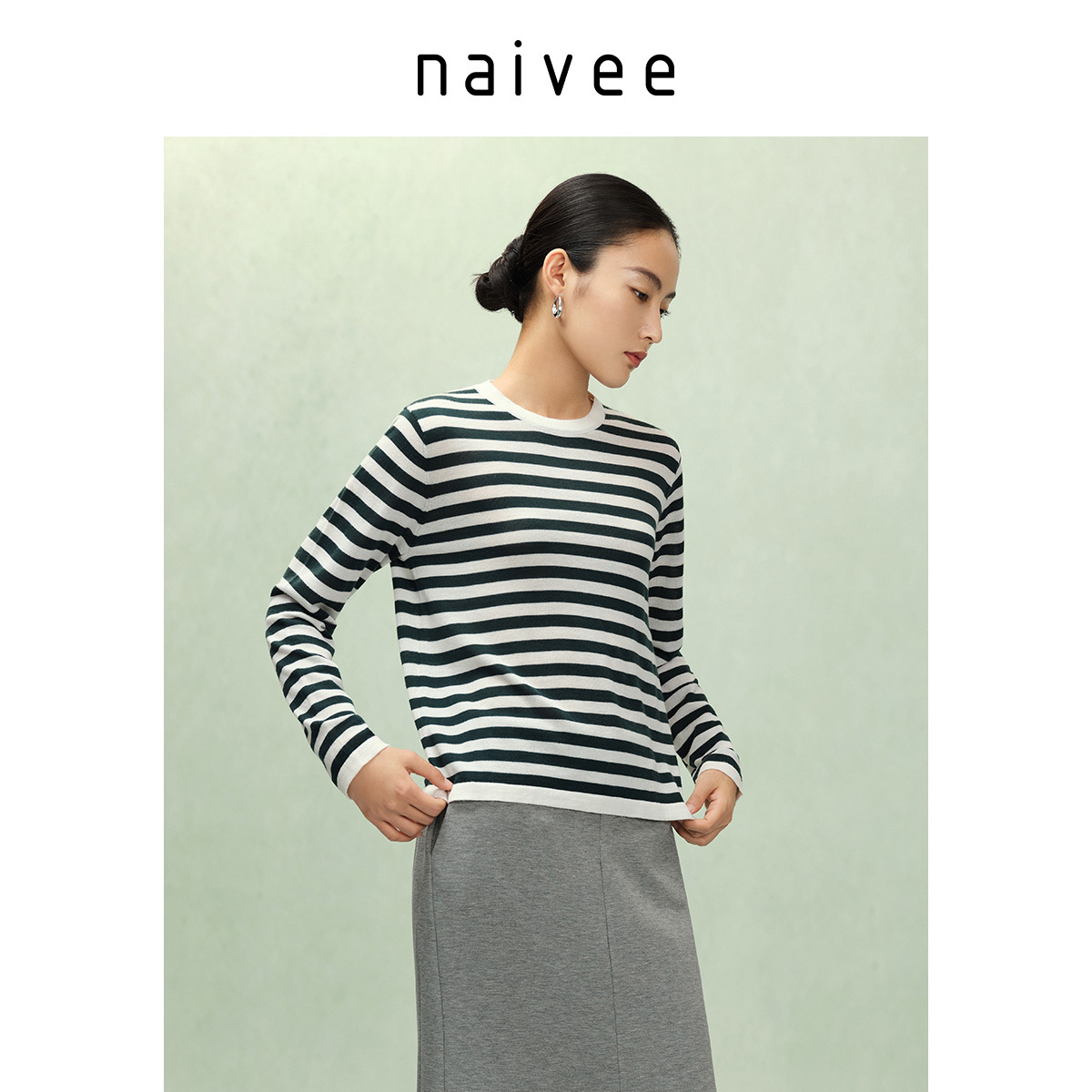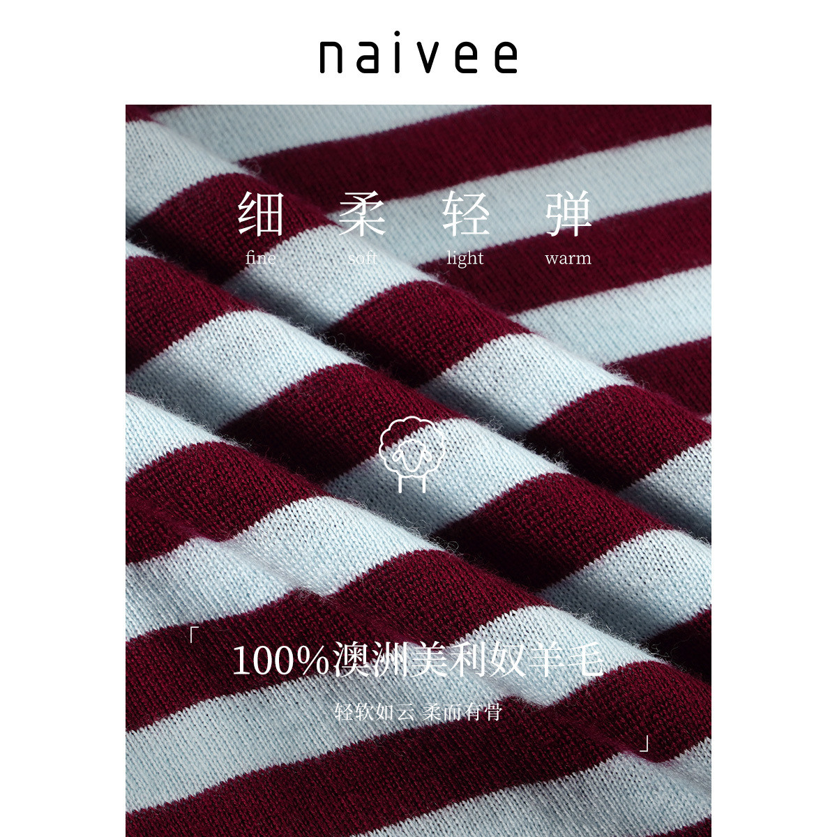 商场同款naivee纳薇25秋新款经典撞色条纹套头针织衫美利奴纯羊毛
