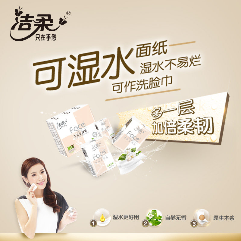 洁柔纸巾小包手帕纸可湿水纸巾4层加厚18包便携纸随身装实惠装