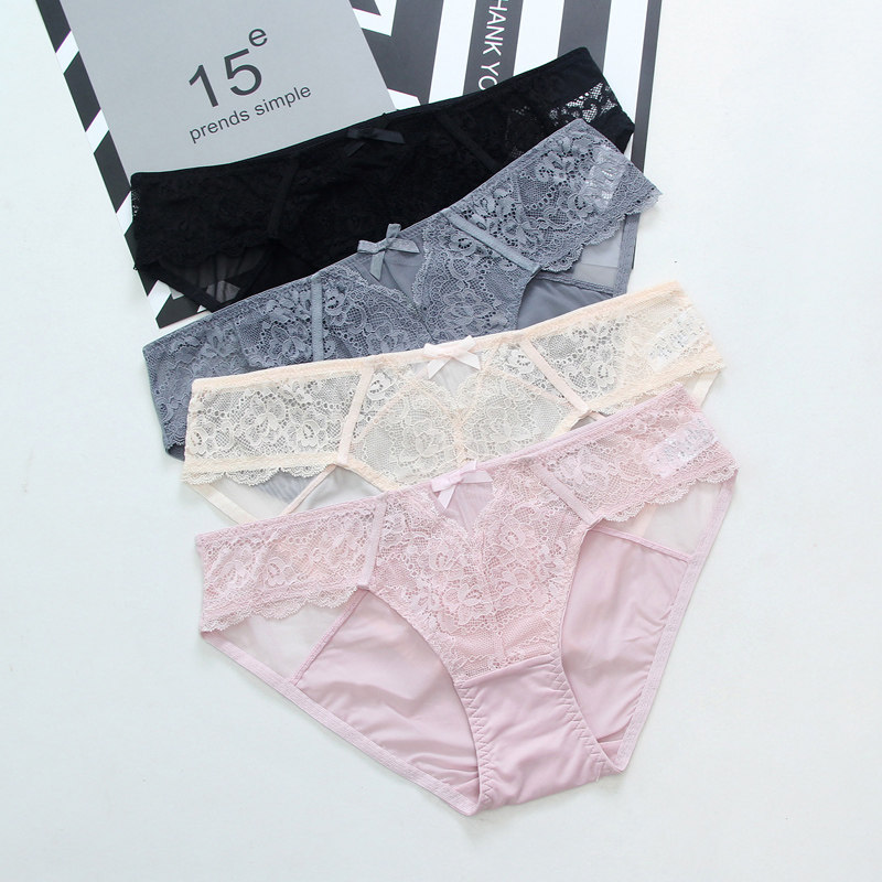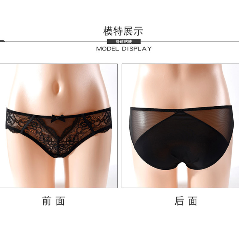 欧美内裤女士性感透明低腰蕾丝纯欲少女生三角裤夏季黑白色纯棉档