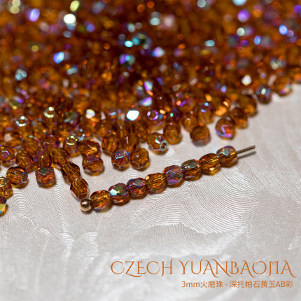3mm火磨珠100颗 深托帕石黄玉AB彩进口捷克机造珠串珠法枣珠diy