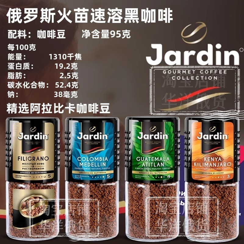 进口俄罗斯速溶纯黑冻干咖啡jardin黑咖啡粉浓香提神防困火苗95克