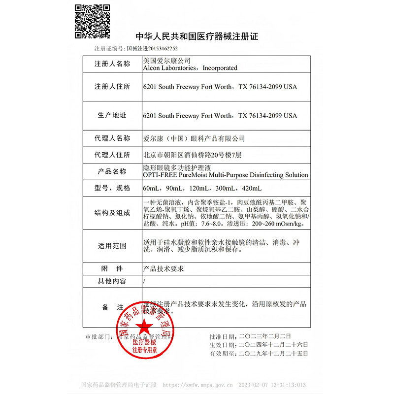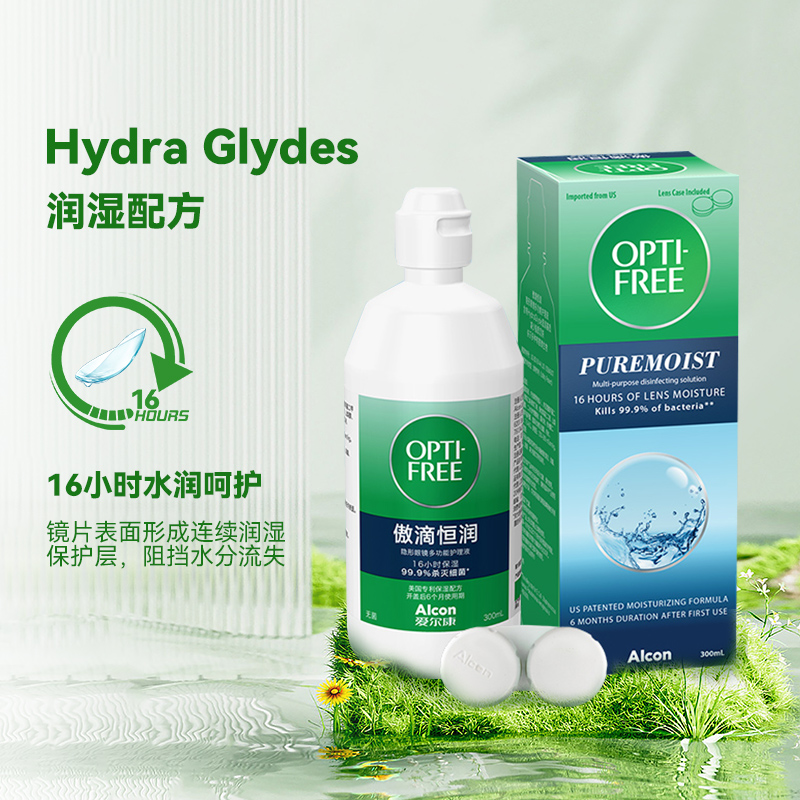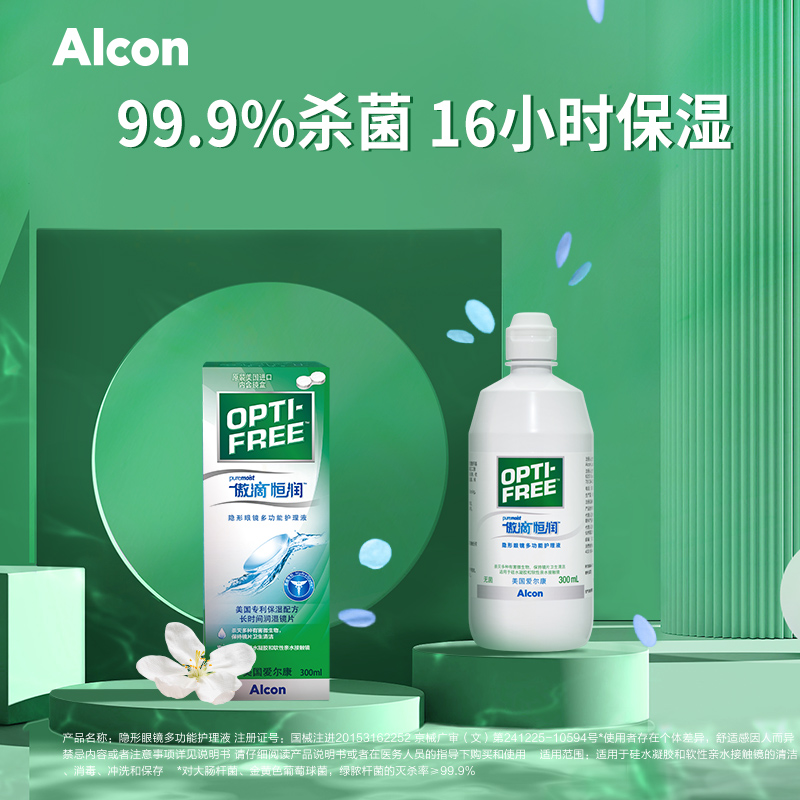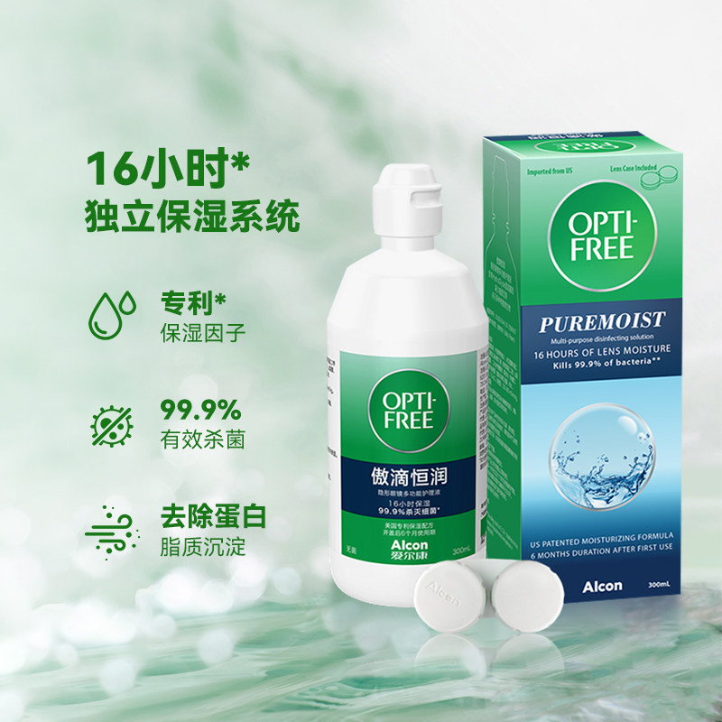 爱尔康隐形眼镜护理液傲滴恒润第三代300ml美瞳大小瓶装