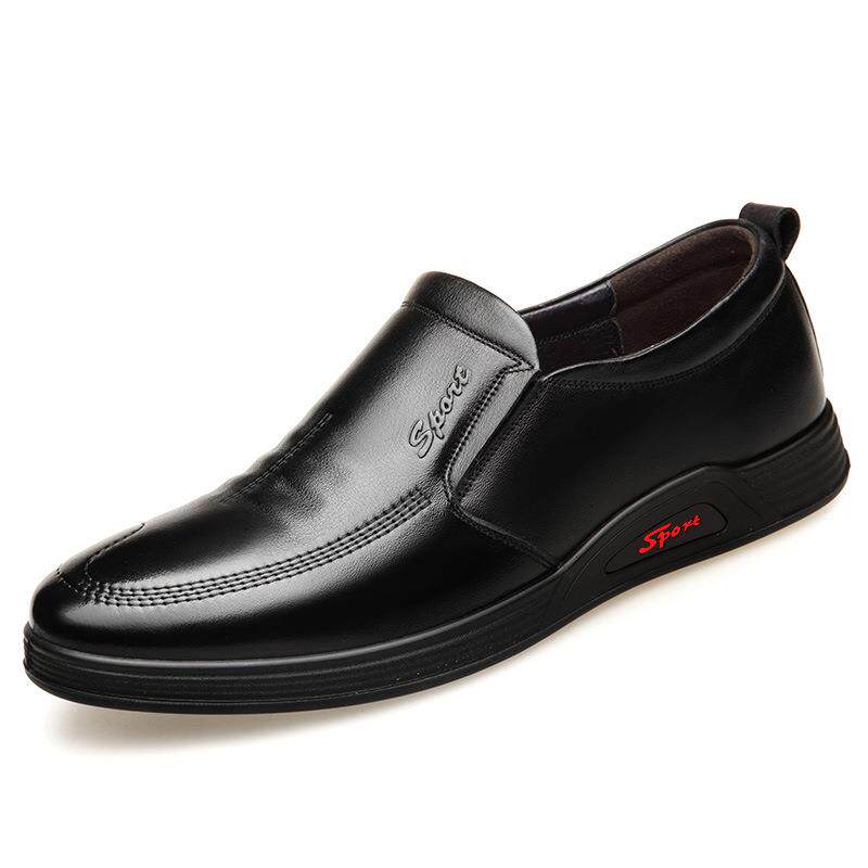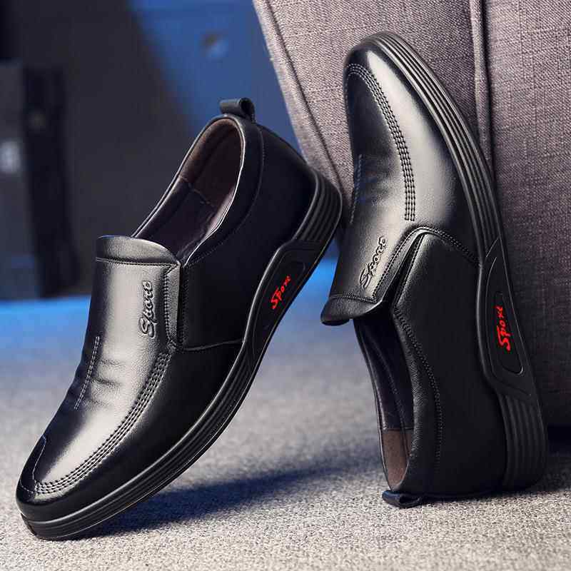 高档夏秋皮休闲鞋层牛皮男装皮鞋软无带没鞋带男子软皮头真底悠闲