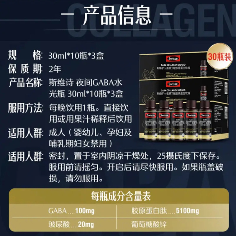 Swisse斯维诗胶原蛋白口服液氨基丁酸GABA官方旗舰店正品液态饮品