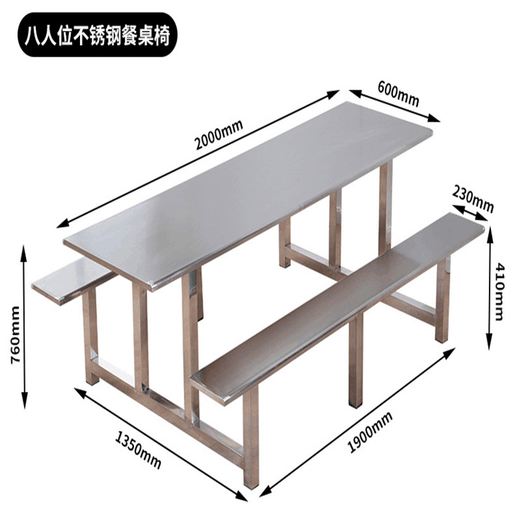食堂餐桌椅不锈钢连体餐桌学生员工快餐桌椅不锈钢连体餐桌子儿童