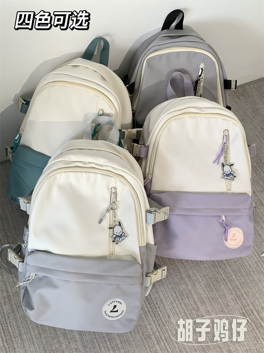 小众设计感撞色书包女韩版初中高中学生双肩包日系休闲大容量背包