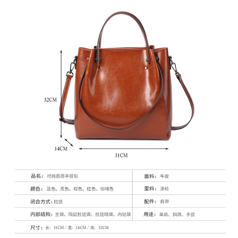头层牛皮真皮女包2025潮流新款时尚简约大容量水桶包单肩斜挎手提