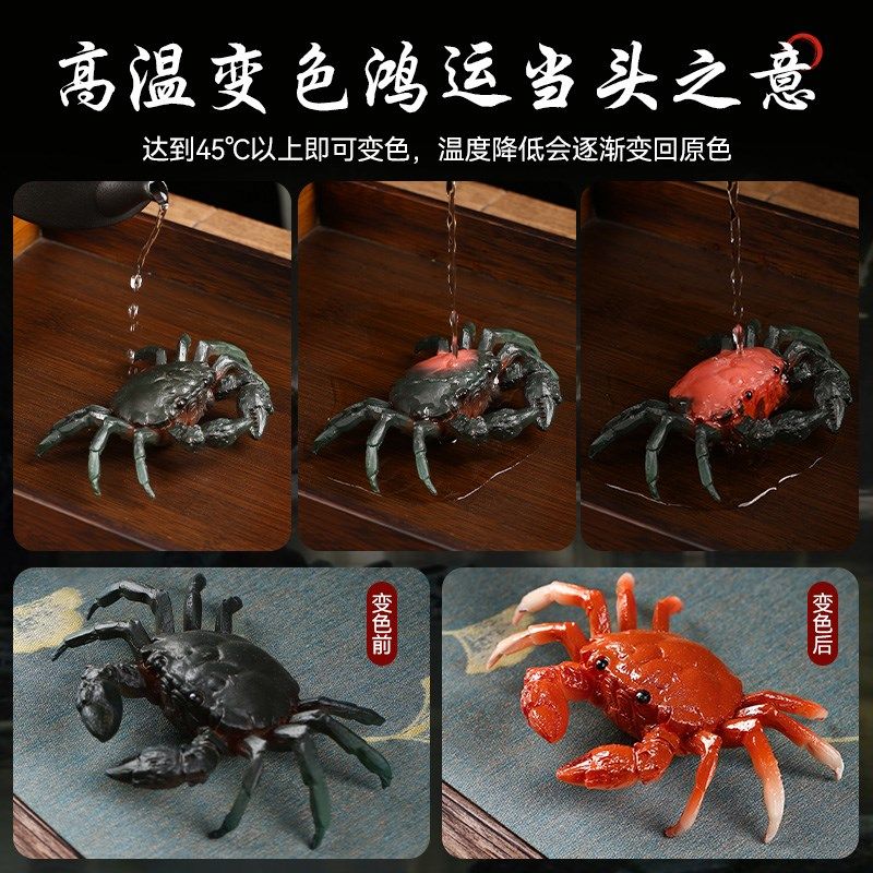 茶宠摆件发横财变色螃蟹摆件动物茶宠可养工艺品茶盘茶台茶具配件