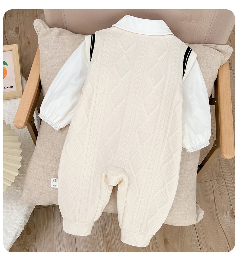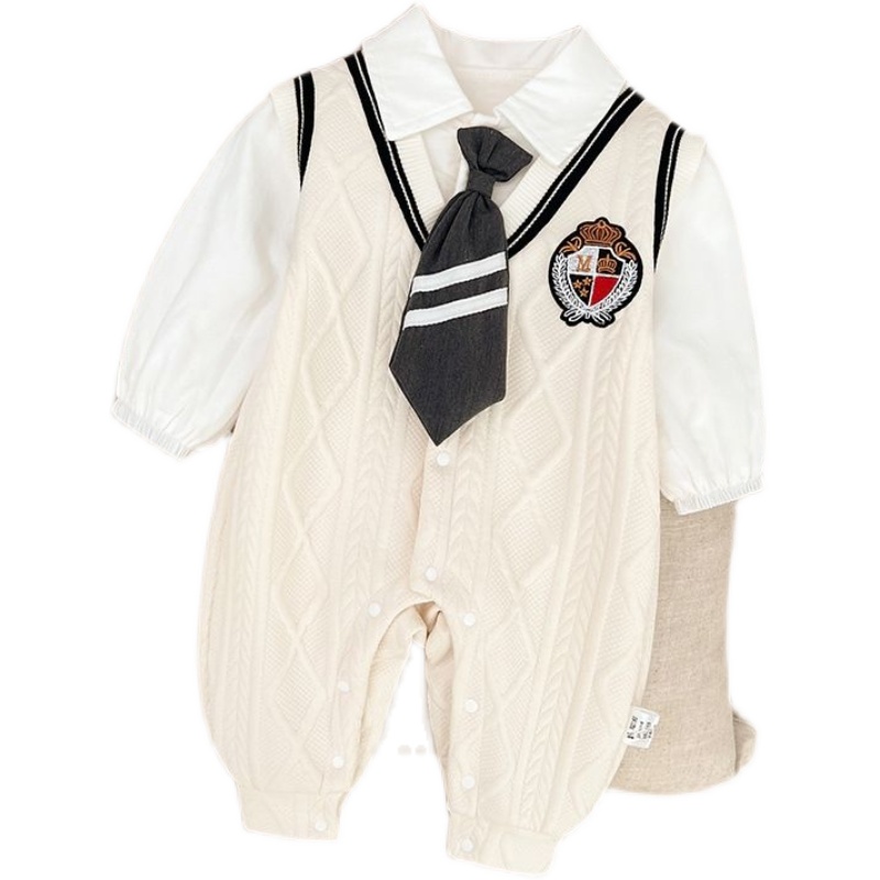 婴儿衣服秋装连体衣男宝宝超萌学院风满月百天哈衣秋季外出爬爬服