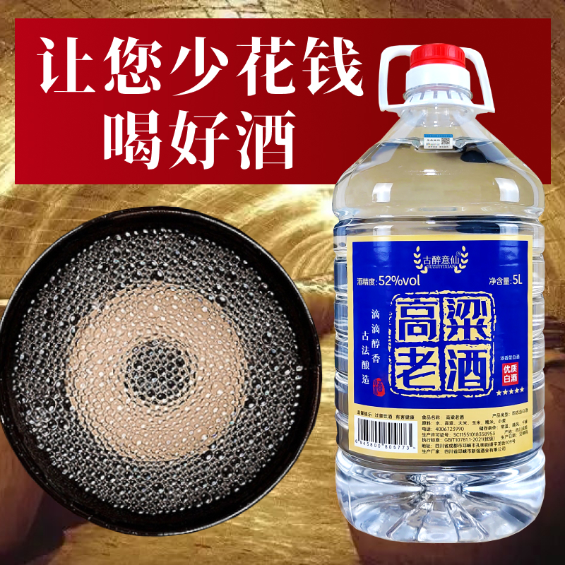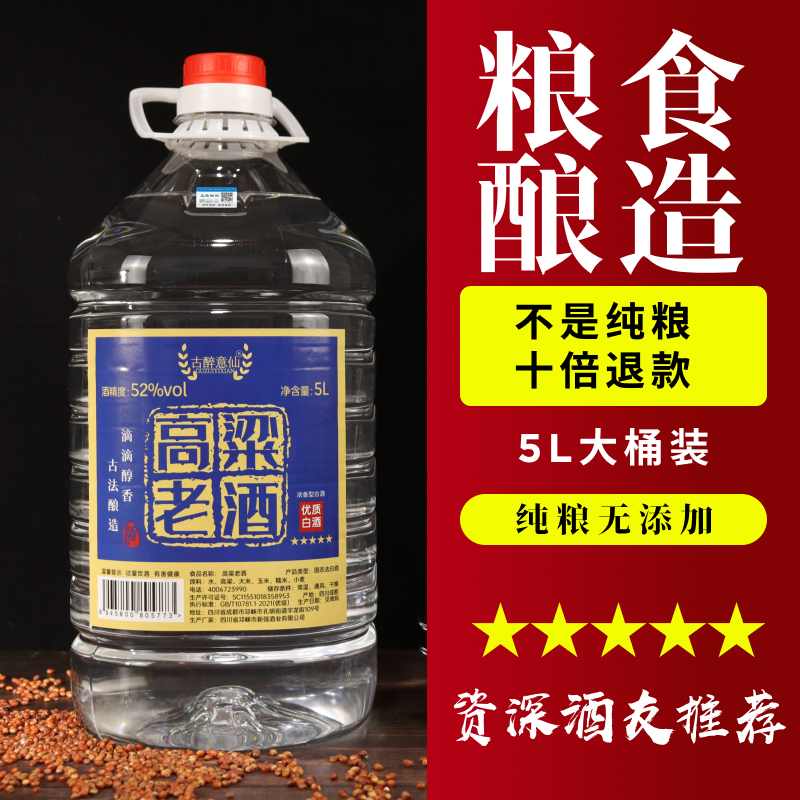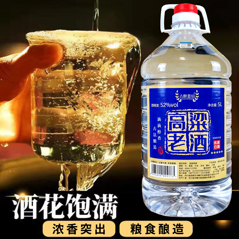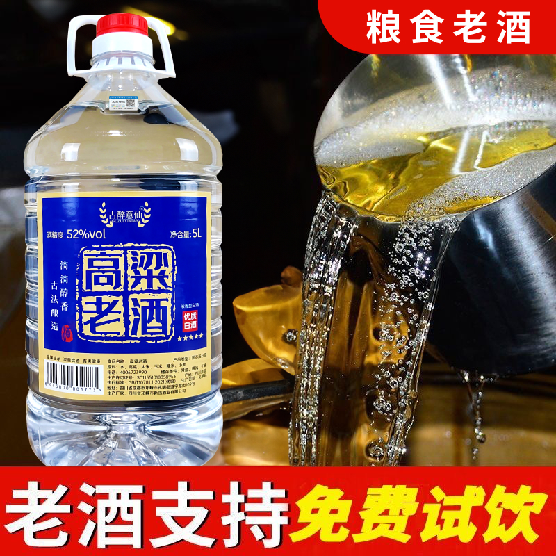 高粱老酒52度60度厂家直销高品质纯粮酒大桶5L浓香型桶装白酒粮食