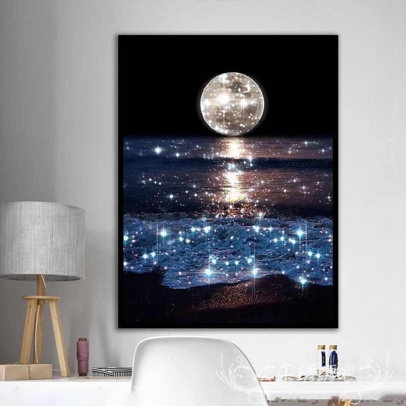 星辰大海钻石画轻奢高级r感风景十字绣自己绣唯美月亮卧室客厅手