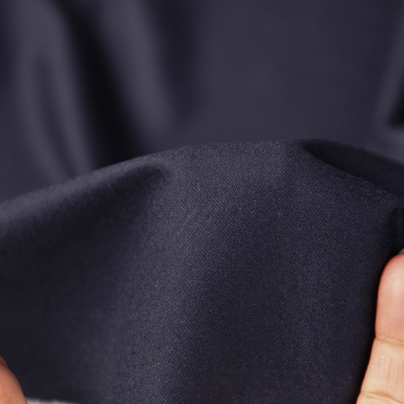 意大利进口薄款VBC藏青色细腻斜纹法兰绒精纺羊毛面料设计师布料