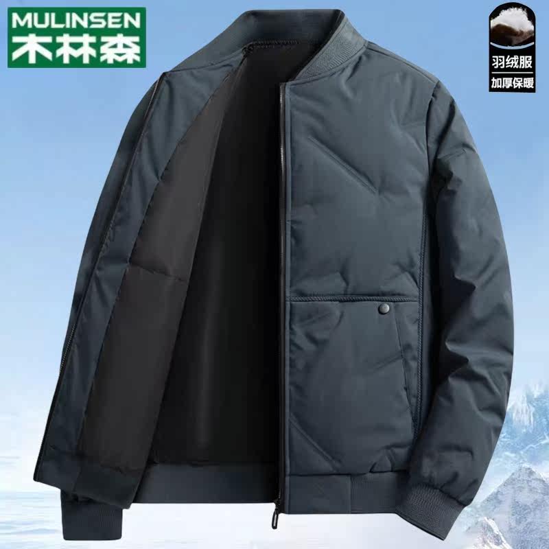 木林森羽绒服男冬季新款棒球领夹克开衫鸭绒保暖加厚休闲外套男装