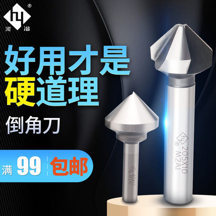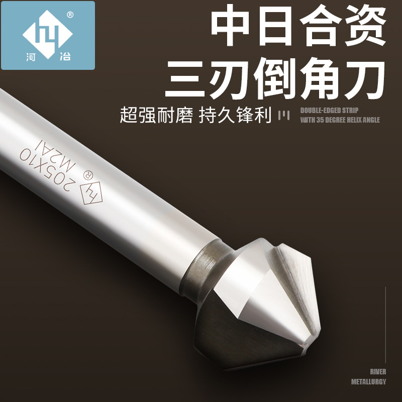 河冶超硬白钢倒角刀90度器沉孔钻头锪钻3三刃不锈钢扩孔钻单刃