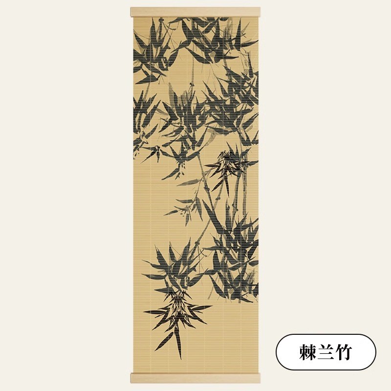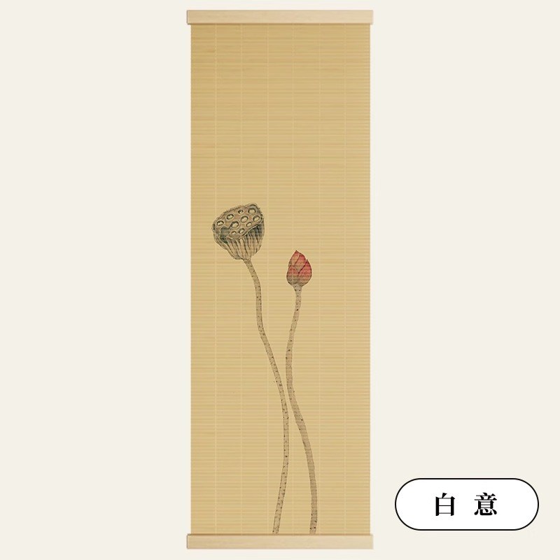 新中式客厅玄关简约装饰画莲蓬荷花工笔画茶室背景墙国风竹帘挂画