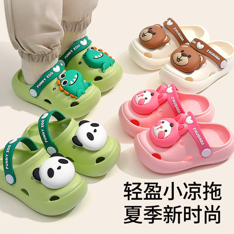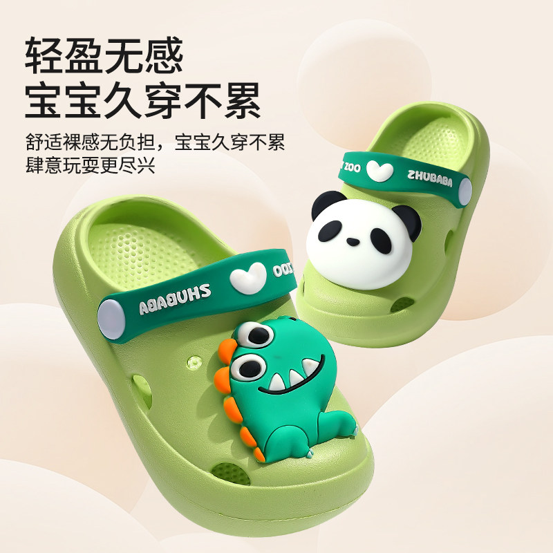 儿童拖鞋男童夏季家居婴幼儿男孩女童小孩沙滩外穿防滑熊猫洞洞鞋