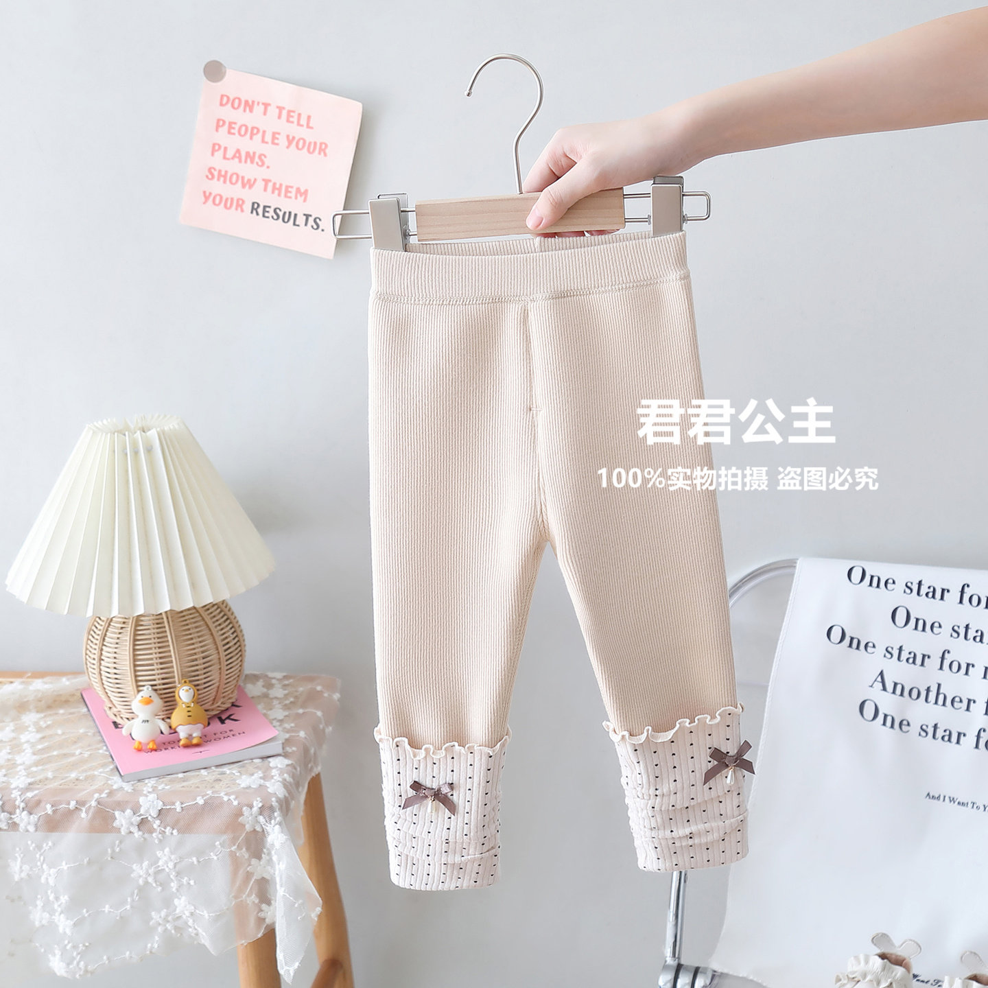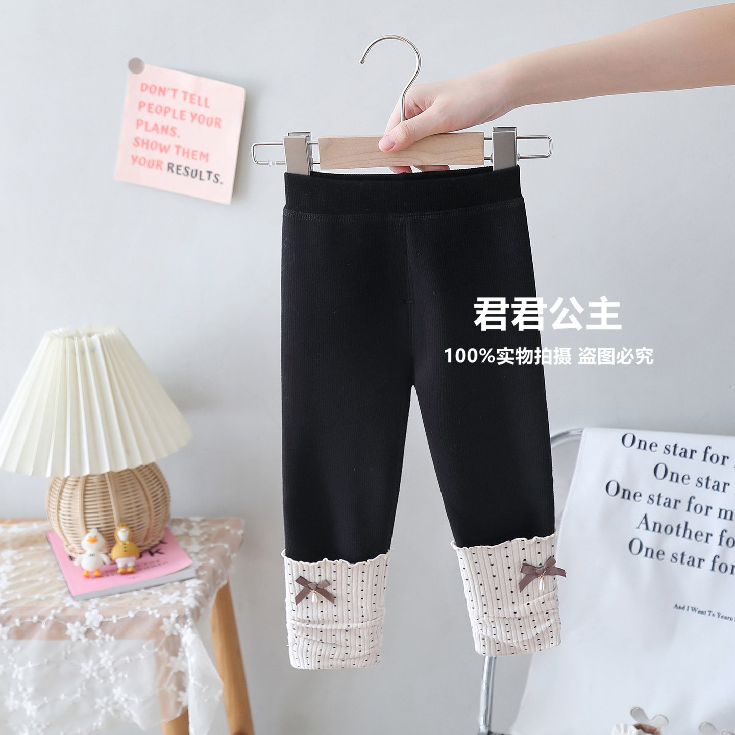 童装冬装女童加绒加厚堆堆袜打底裤婴儿童长裤子女宝宝蝴蝶结棉裤