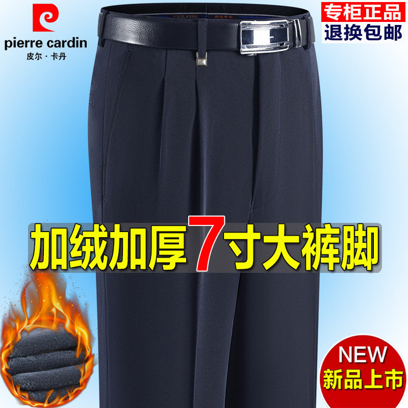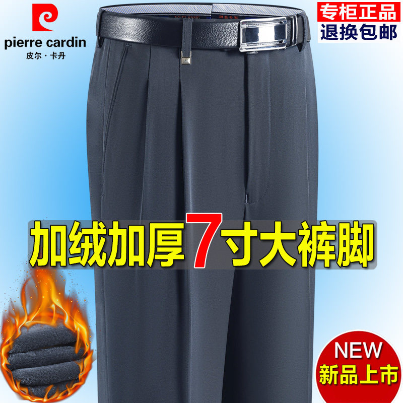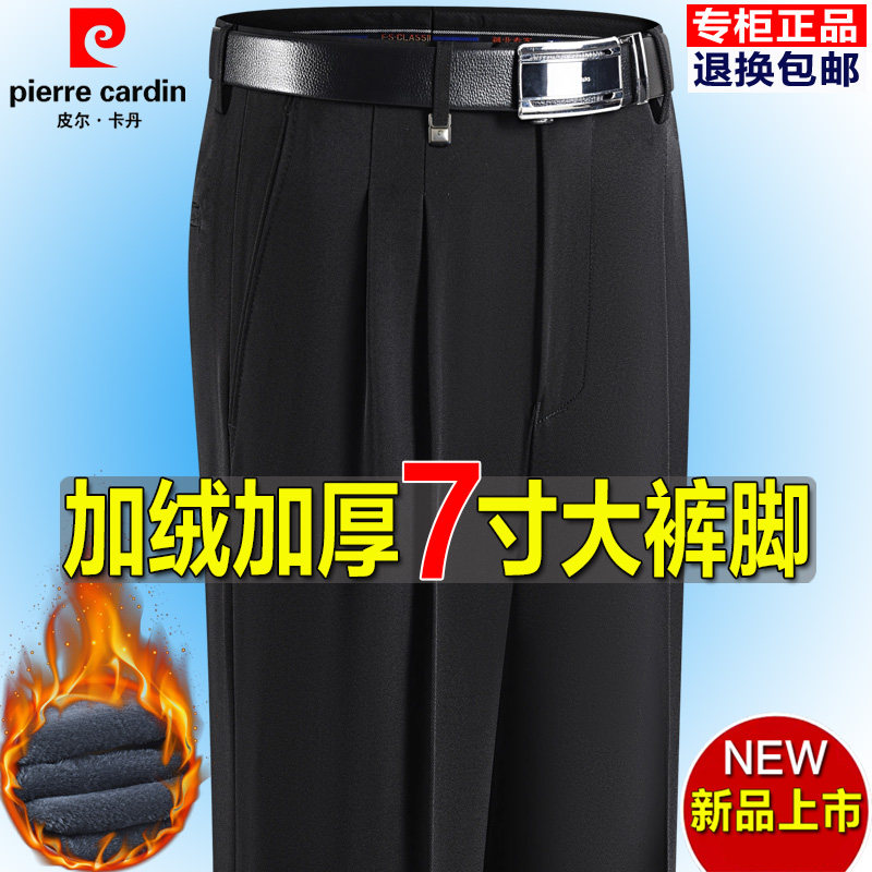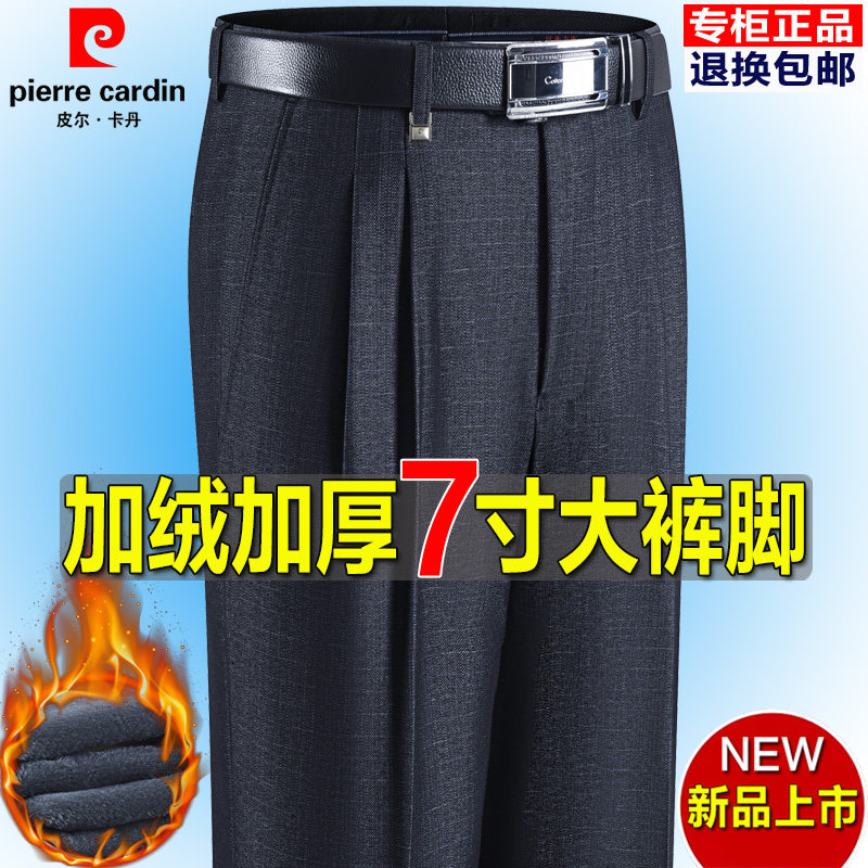 皮尔卡丹冬季加绒西裤男大裤脚